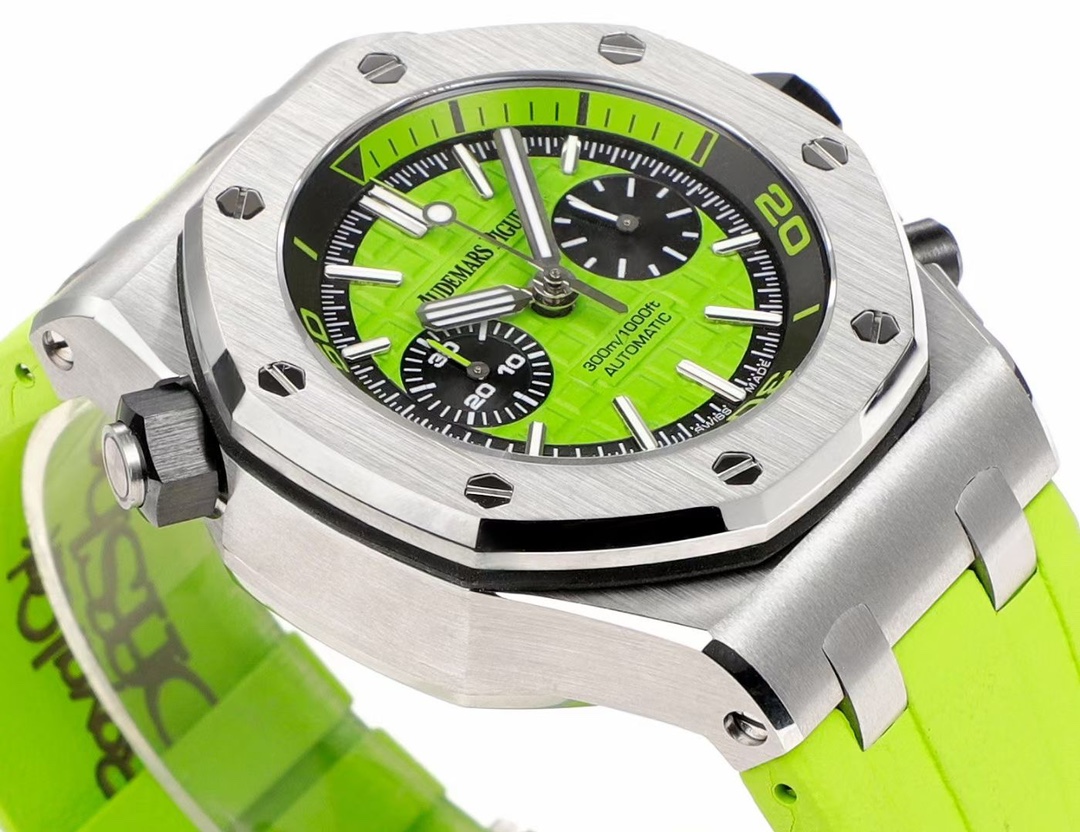 • Audemars Piguet Royal Oak Offshore Chronograph 42mm Green Dial Steel Bezel Green Rubber Diving 26703ST.OO.A038CA.01