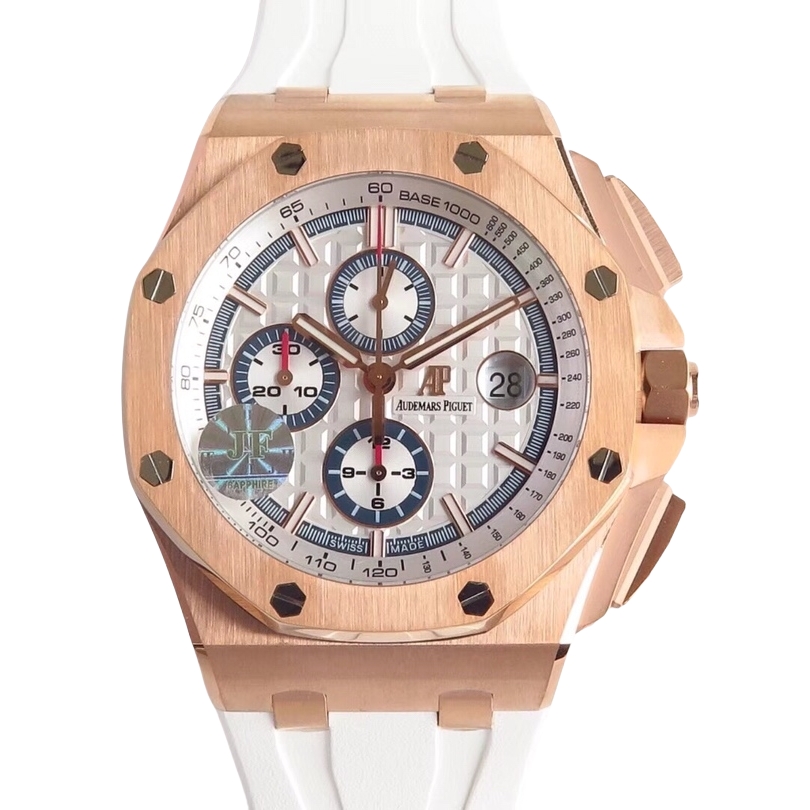 Audemars Piguet Royal Oak Offshore Chronograph 44mm White Blue Dial Rose Gold Bezel Rubber 26408OR.OO.A010CA.01