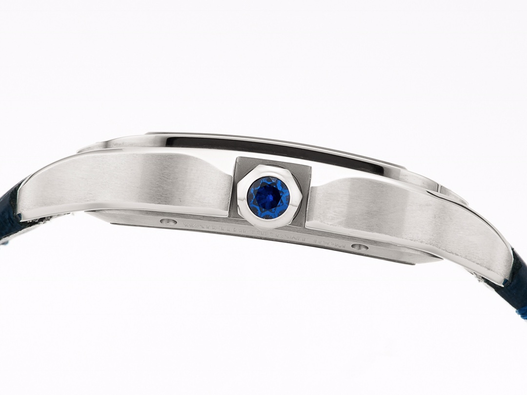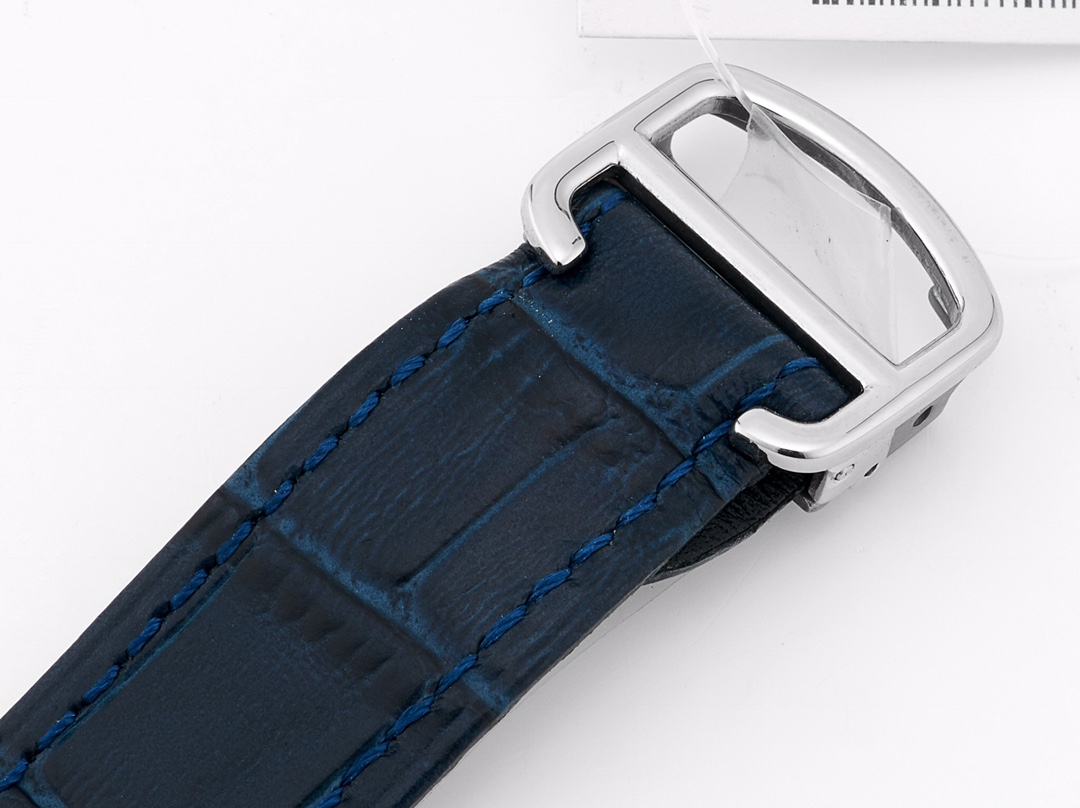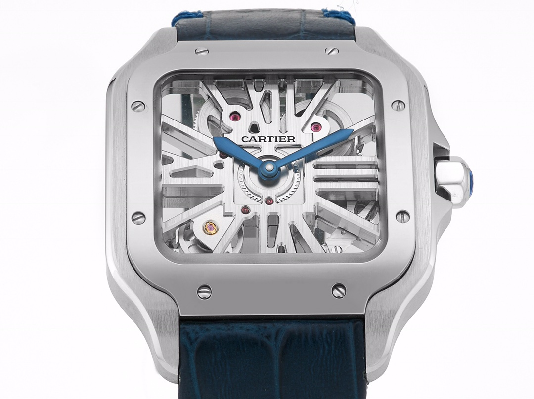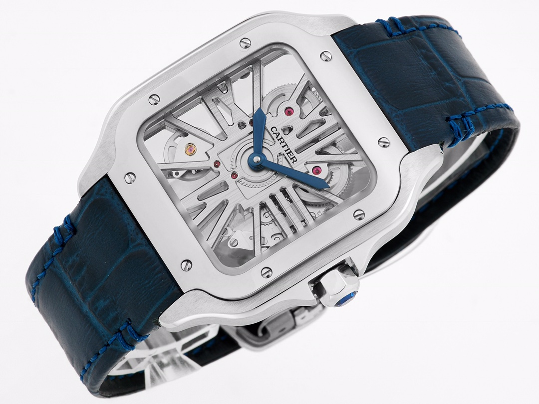 | Cartier Santos 39.8mm Hollow Dial Steel Bezel Blue Leather Strap WHSA0021 | |