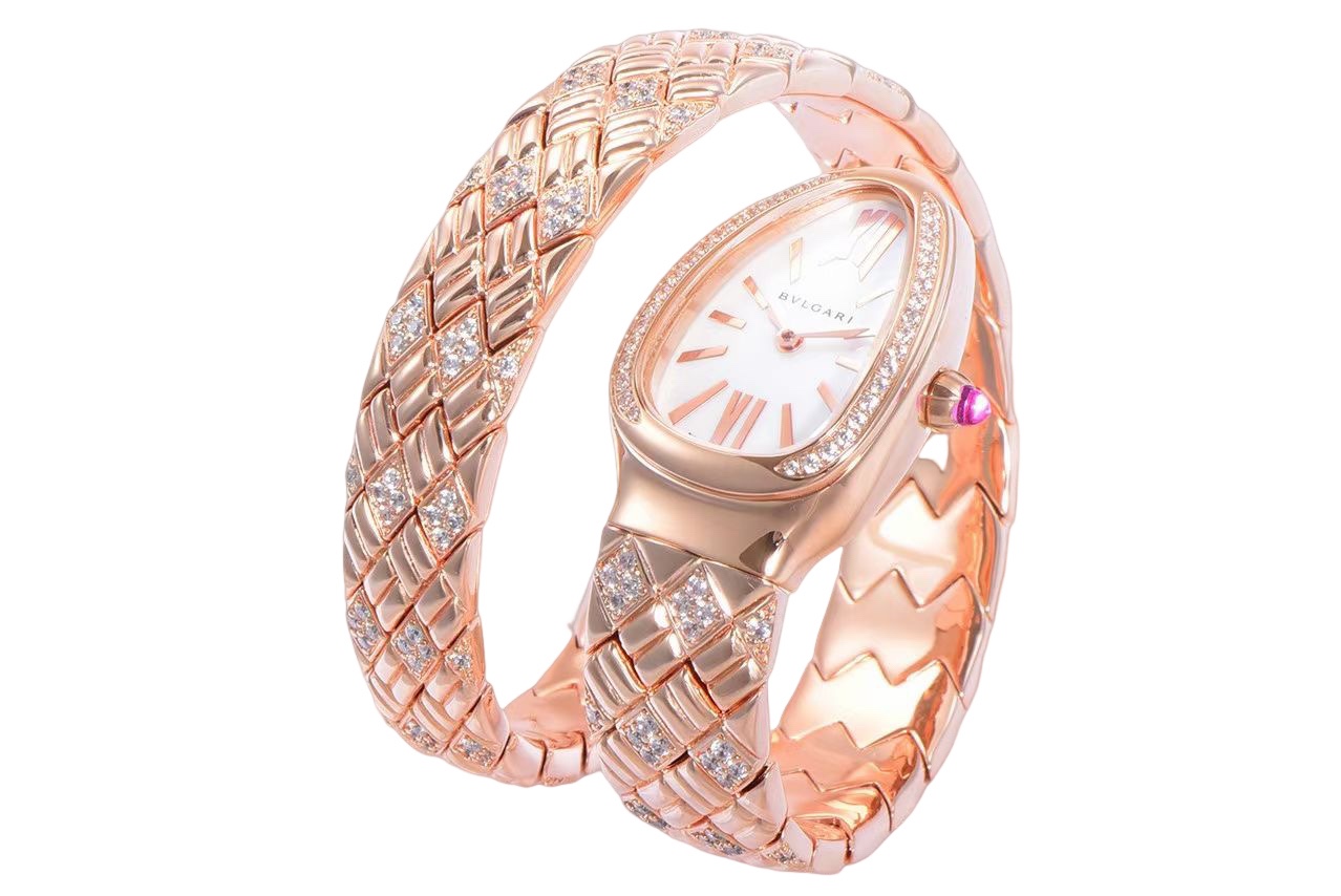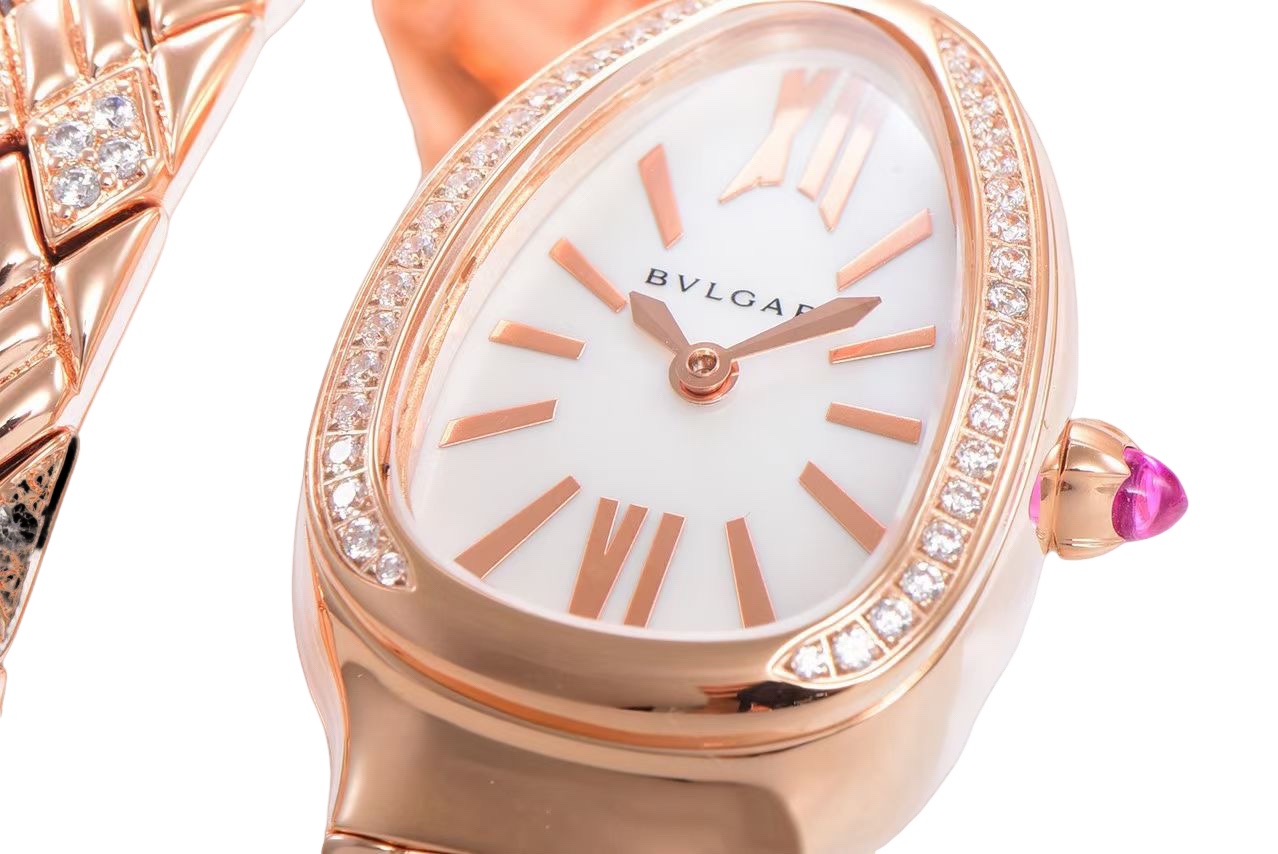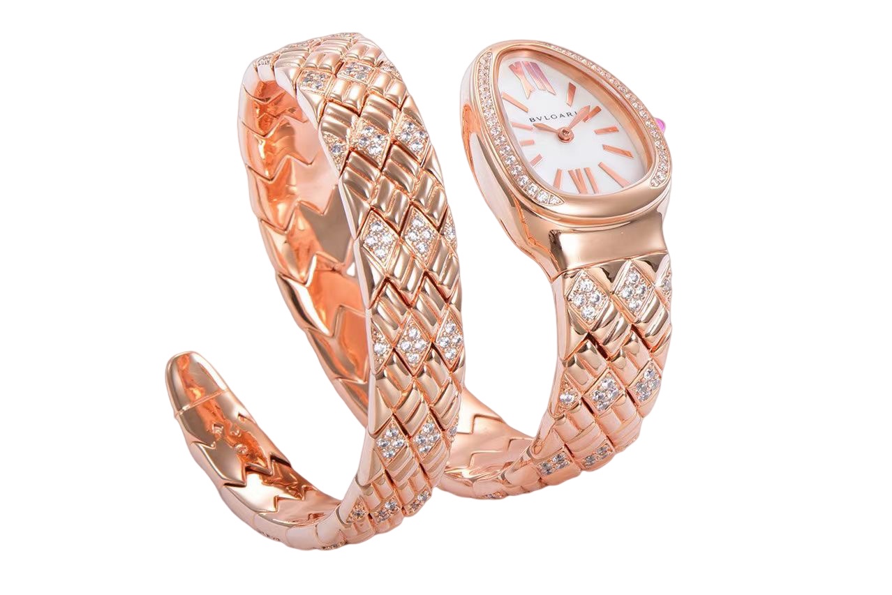 | BVLGARI Serpenti Spiga 35mm White Pearl Dial Rose Gold Diamond Bezel Rose Gold Diamond Strap 103656 Ladies Woman | |