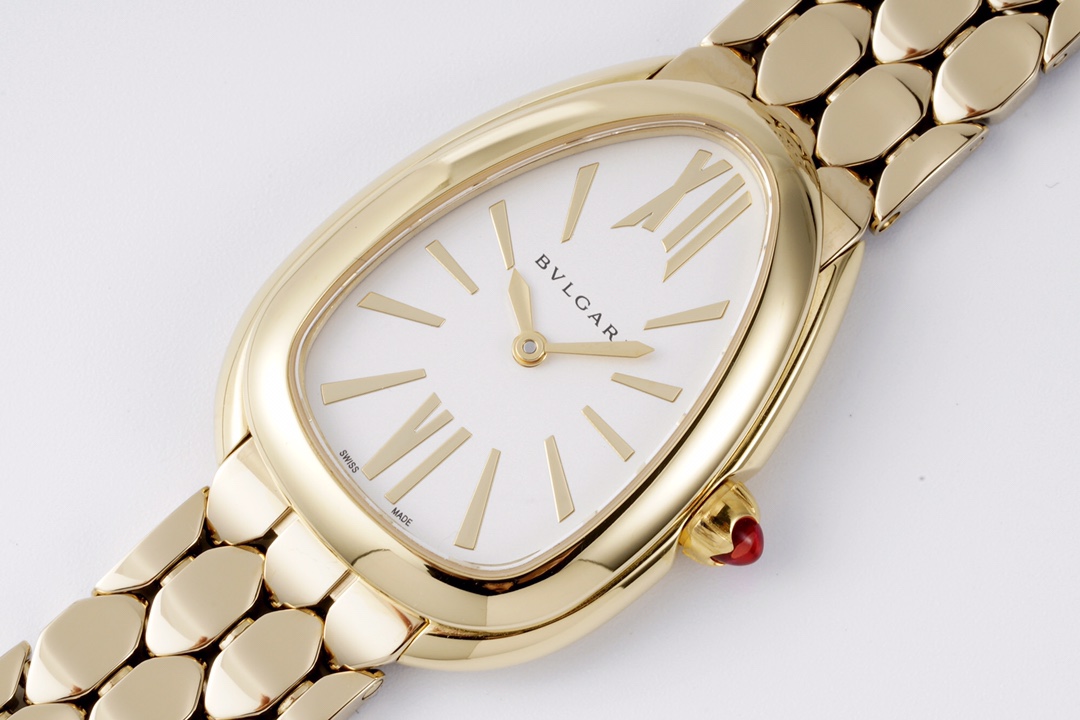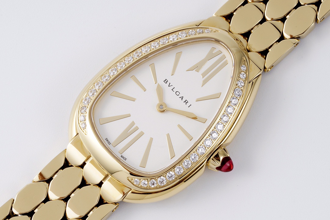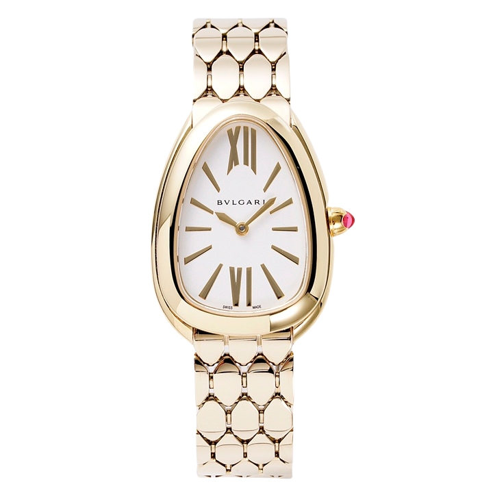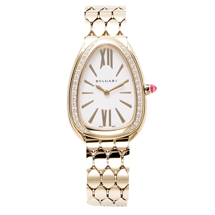 BVLGARI Serpenti Seduttori 33mm White Dial Yellow Gold Diamond Bezel Strap 103147 Ladies Woman