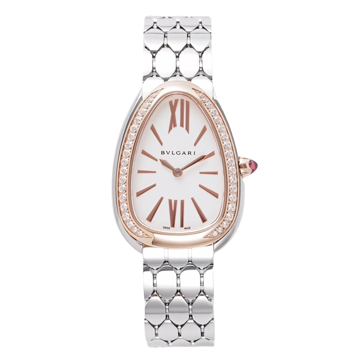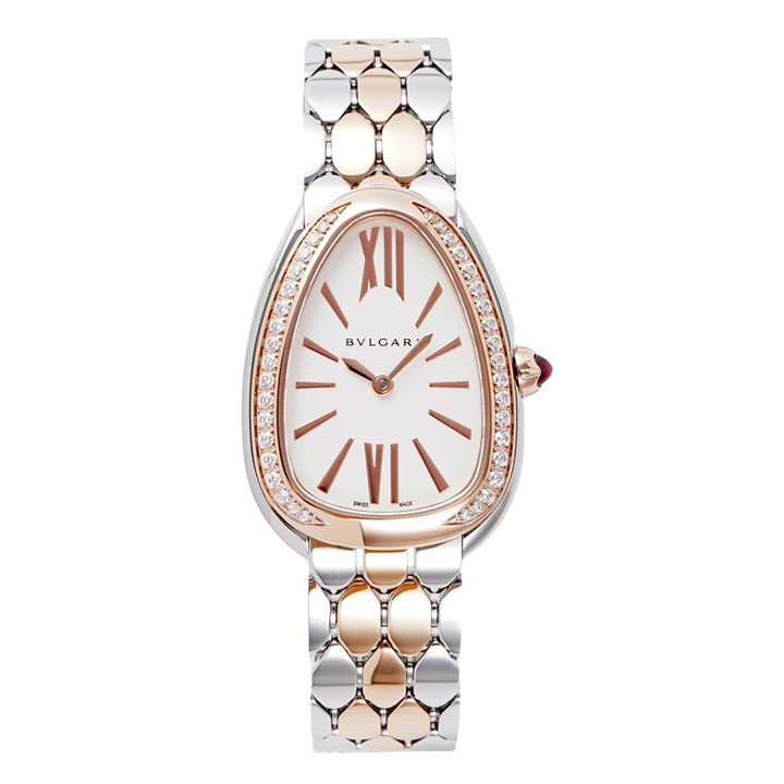 BVLGARI Serpenti Seduttori 33mm White Dial Rose Gold & Steel Diamond Bezel Strap 103274 Ladies Woman