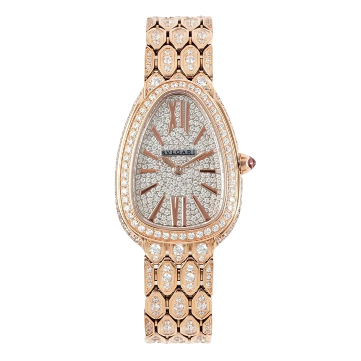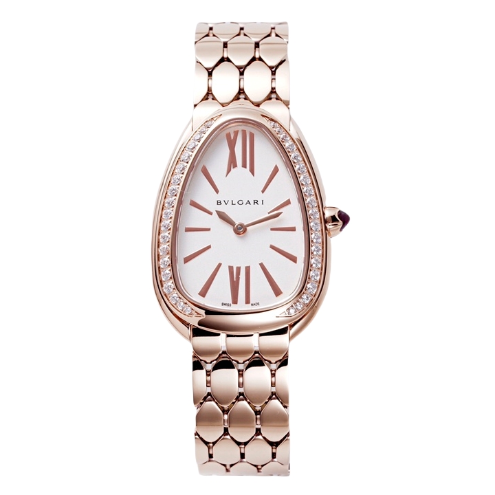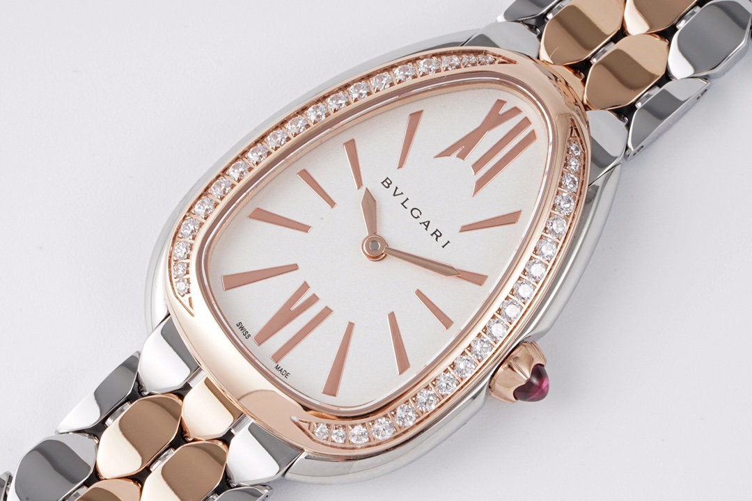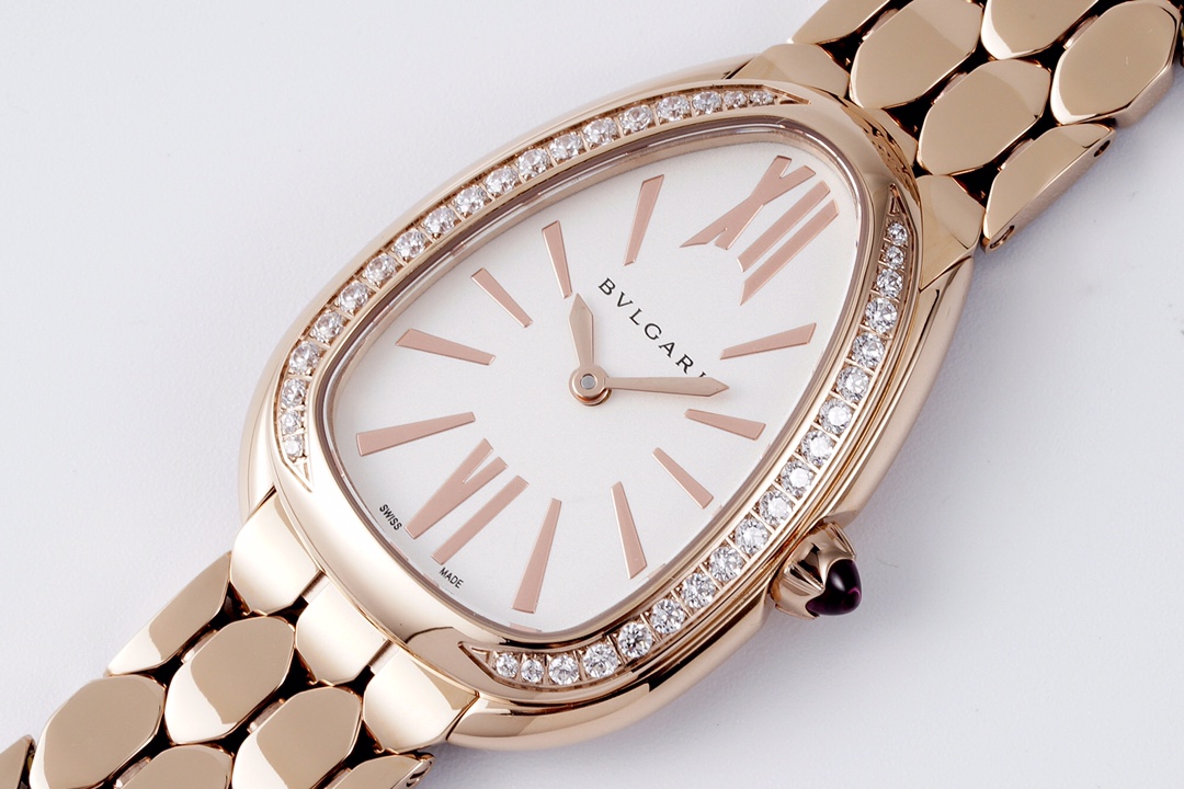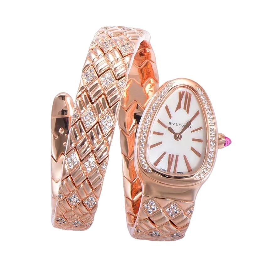 BVLGARI Serpenti Spiga 35mm White Pearl Dial Rose Gold Diamond Bezel Rose Gold Diamond Strap 103656 Ladies Woman