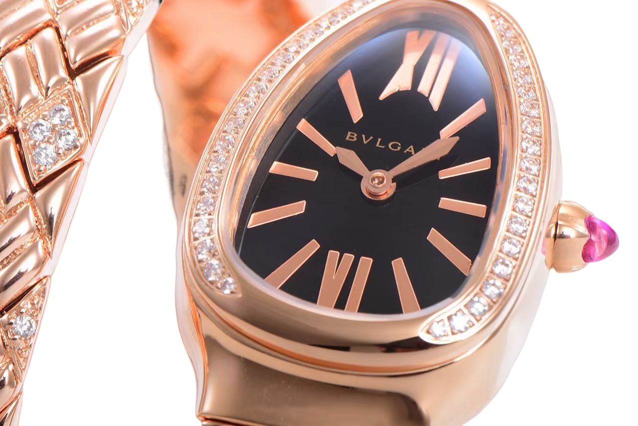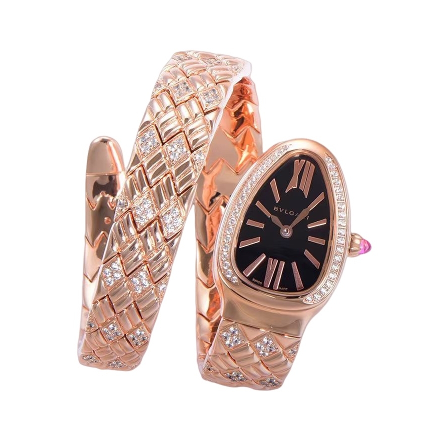BVLGARI Serpenti Spiga 35mm Black Dial Rose Gold Diamond Bezel Rose Gold Diamond Strap 103252 Ladies Woman