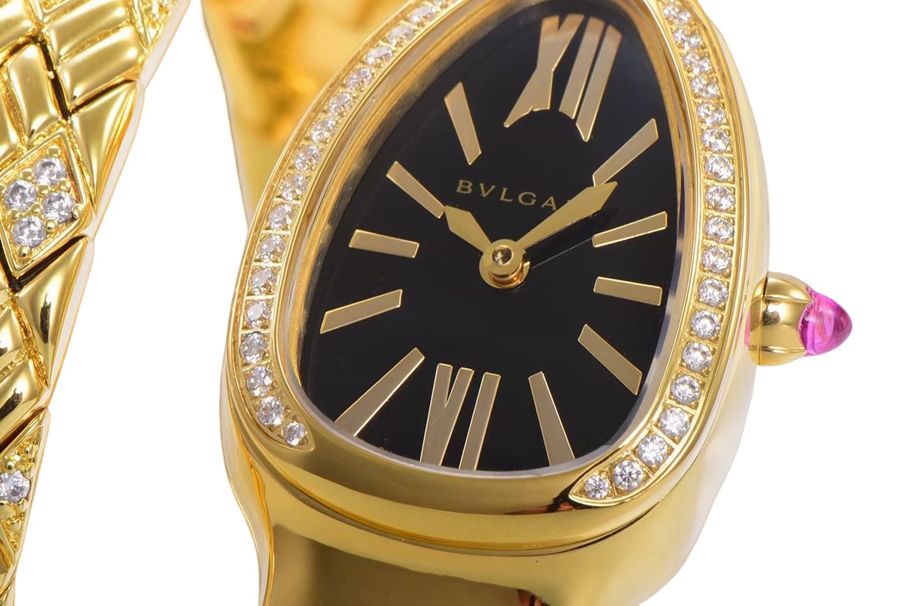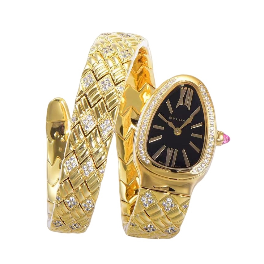 BVLGARI Serpenti Spiga 35mm Black Dial Yellow Gold Diamond Bezel Yellow Gold Diamond Strap 103748 Ladies Woman