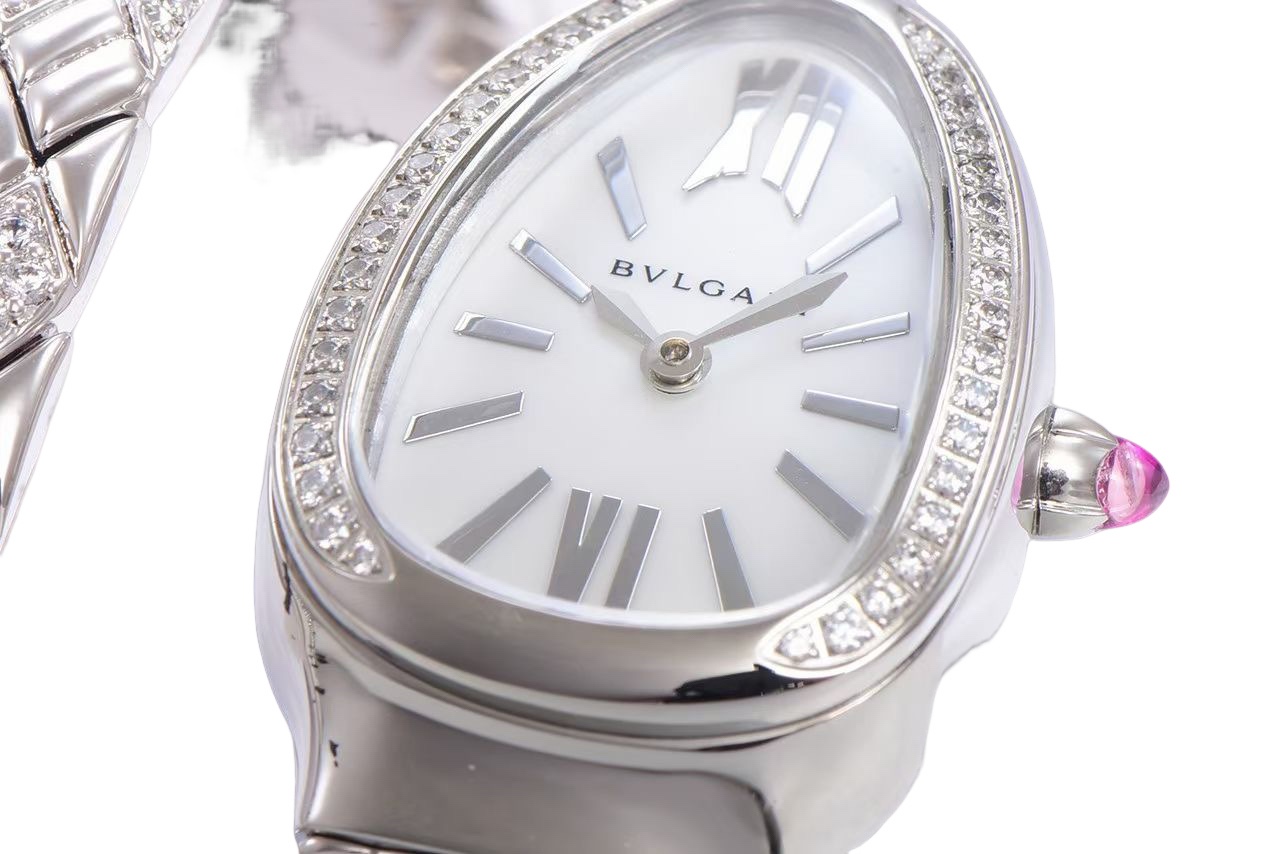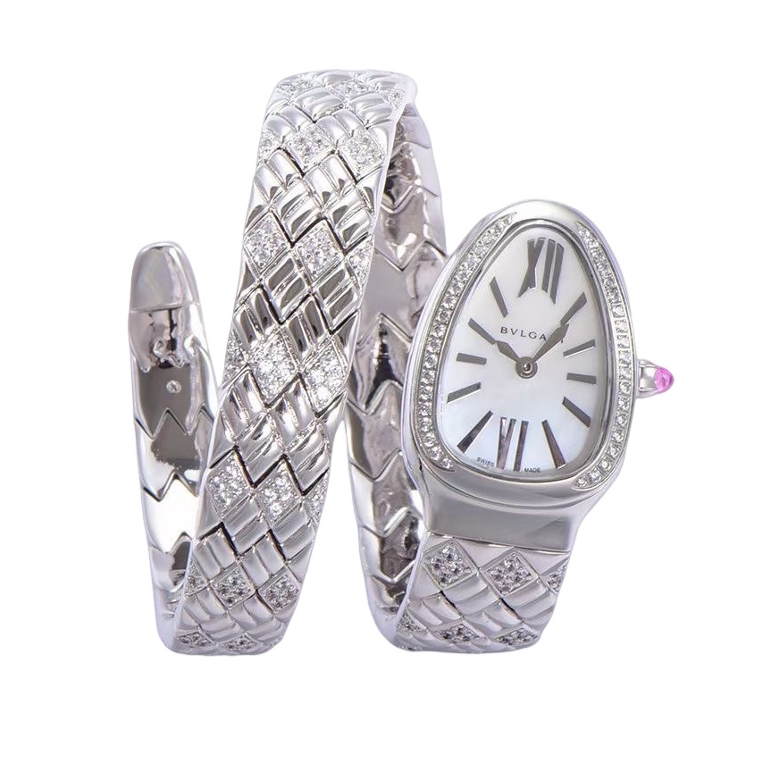 BVLGARI Serpenti Spiga 35mm White Dial Steel Diamond Bezel Steel Diamond Strap 103749 Ladies Woman