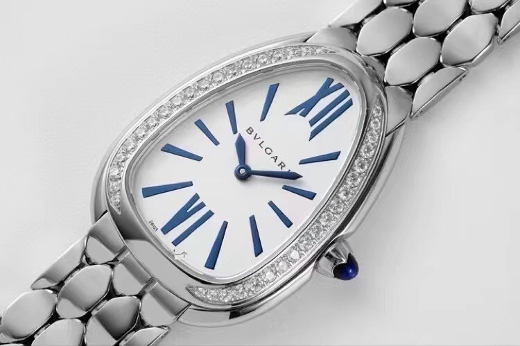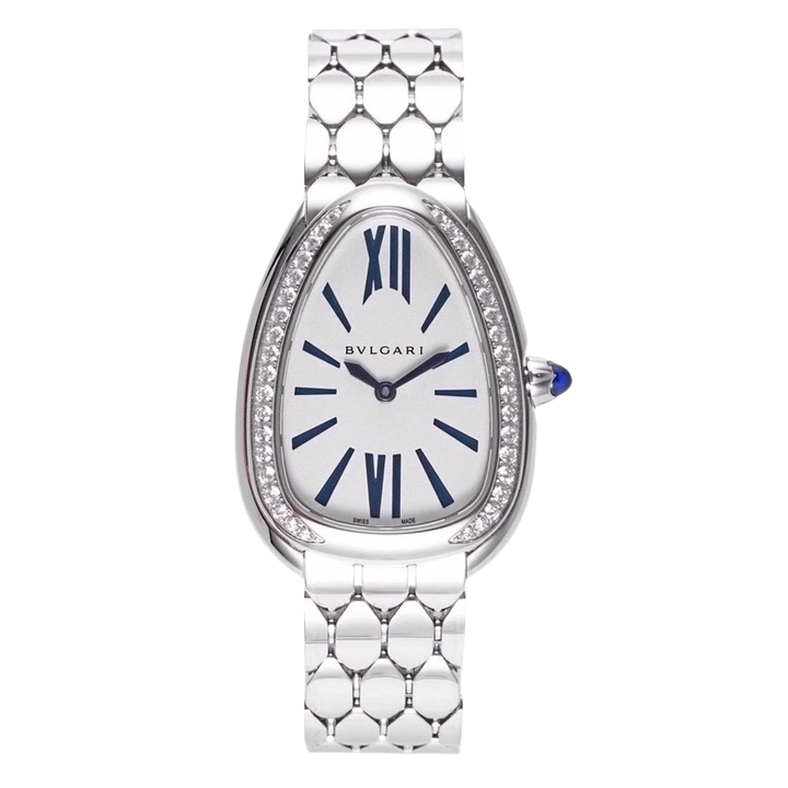 BVLGARI Serpenti Seduttori 33mm White Blue Dial Steel Diamond Bezel Steel Strap 103148 Ladies Woman