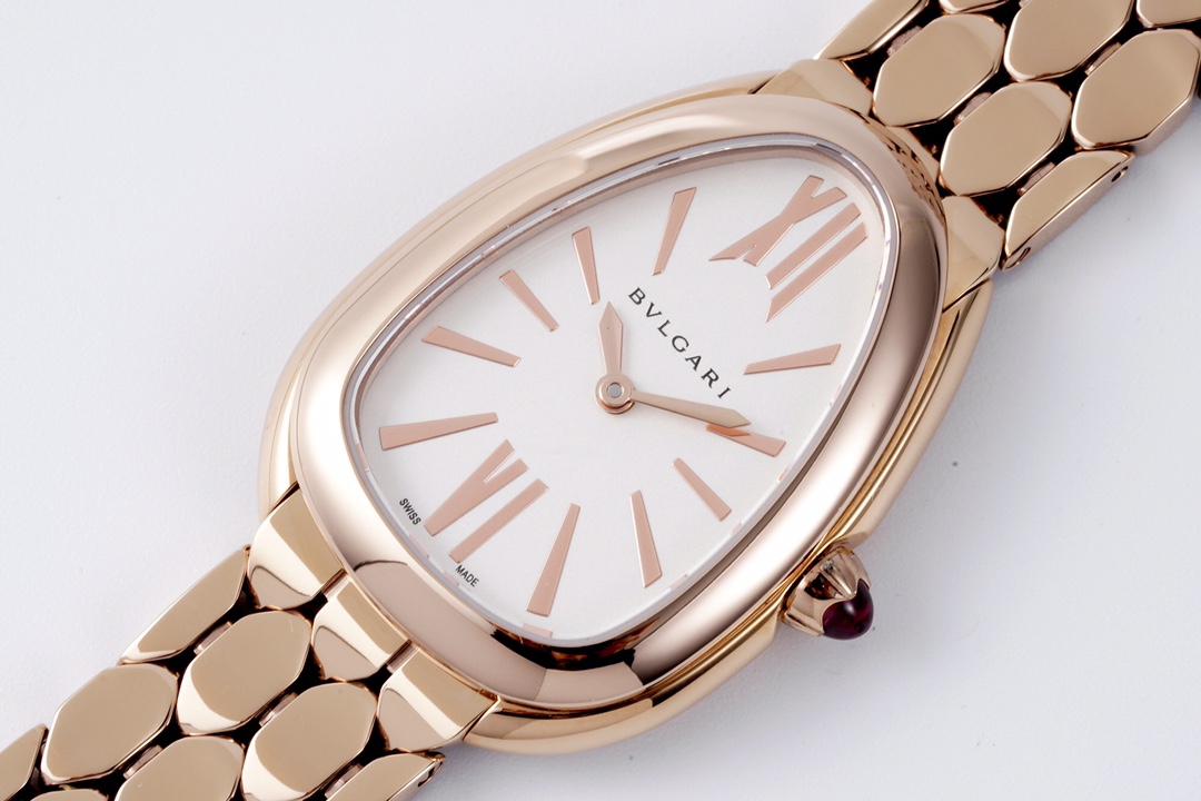 BVLGARI Serpenti Seduttori 33mm White Dial Rose Gold Bezel Strap 103145 Ladies Woman