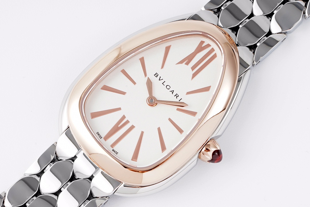 BVLGARI Serpenti Seduttori 33mm White Dial Rose Gold & Steel Bezel Steel Strap 103144 Ladies Woman