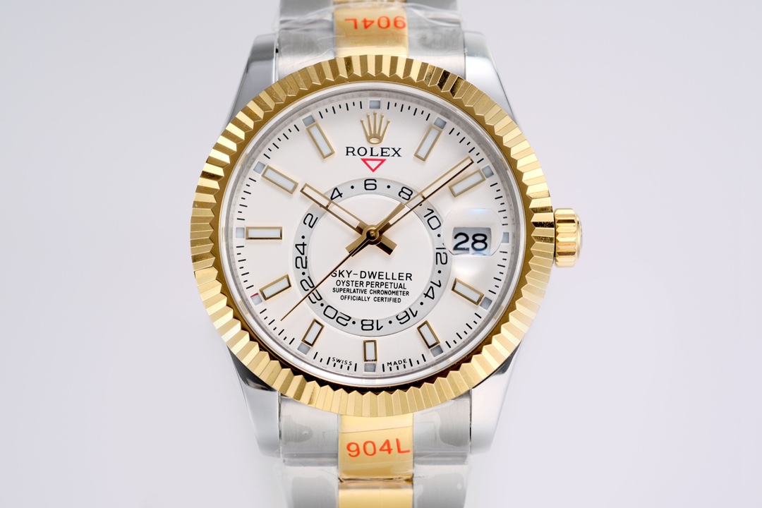 Rolex Sky-Dweller 42mm White Dial Yellow Bezel Gold & Steel 336933-0005