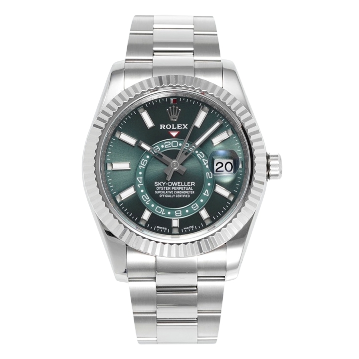 Rolex Sky-Dweller 42mm Green Dial Platinum Bezel Steel Complications 336934-0002