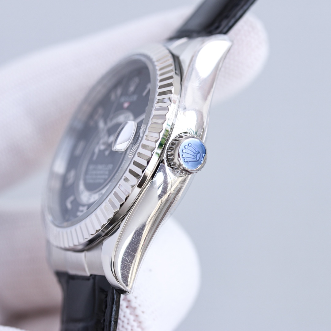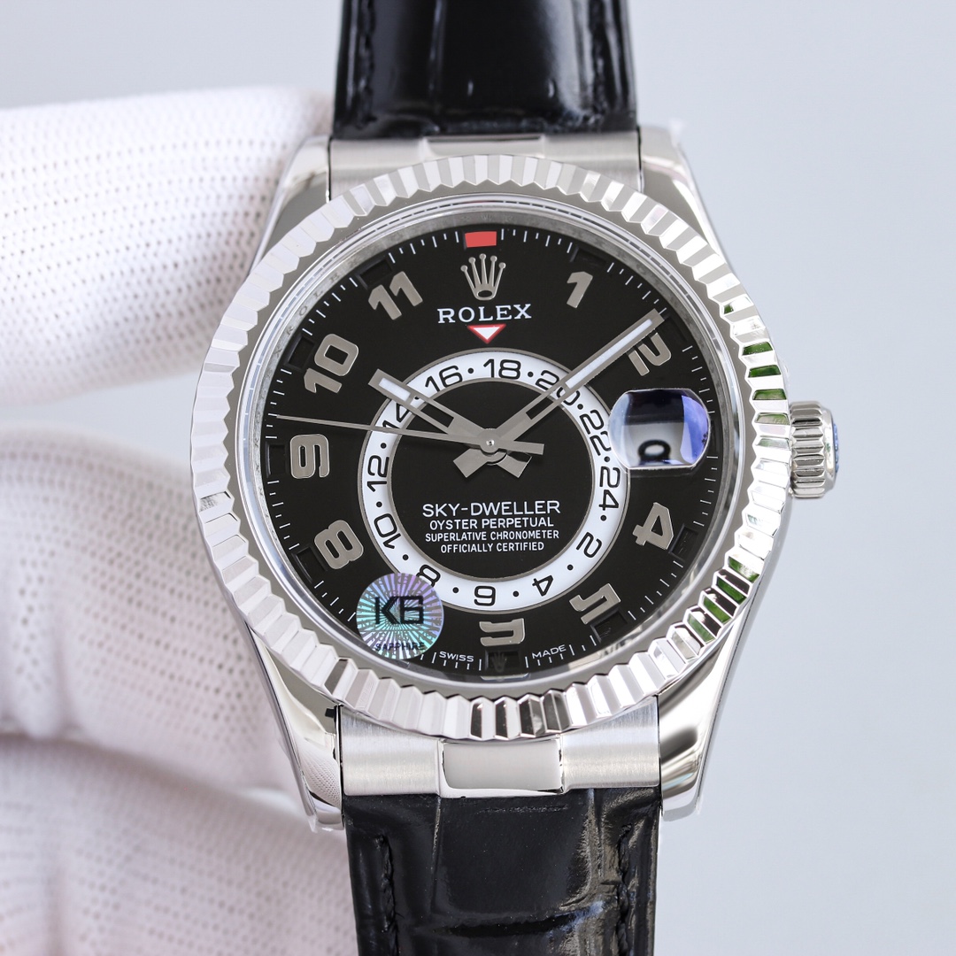 Rolex Sky-Dweller 42mm Black Dial Platinum Bezel Black Leather Arabic Numeral 326139-0003