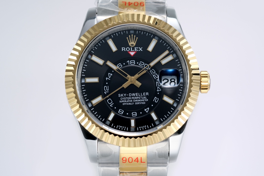 Rolex Sky-Dweller 42mm Black Dial Yellow Bezel Gold & Steel 336933-0003