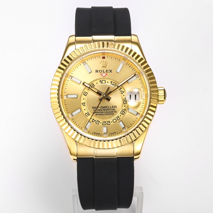 Rolex Sky-Dweller 42mm Green Dial Yellow Gold Bezel Black Rubber Strap 336238-0004 2025 New Products
