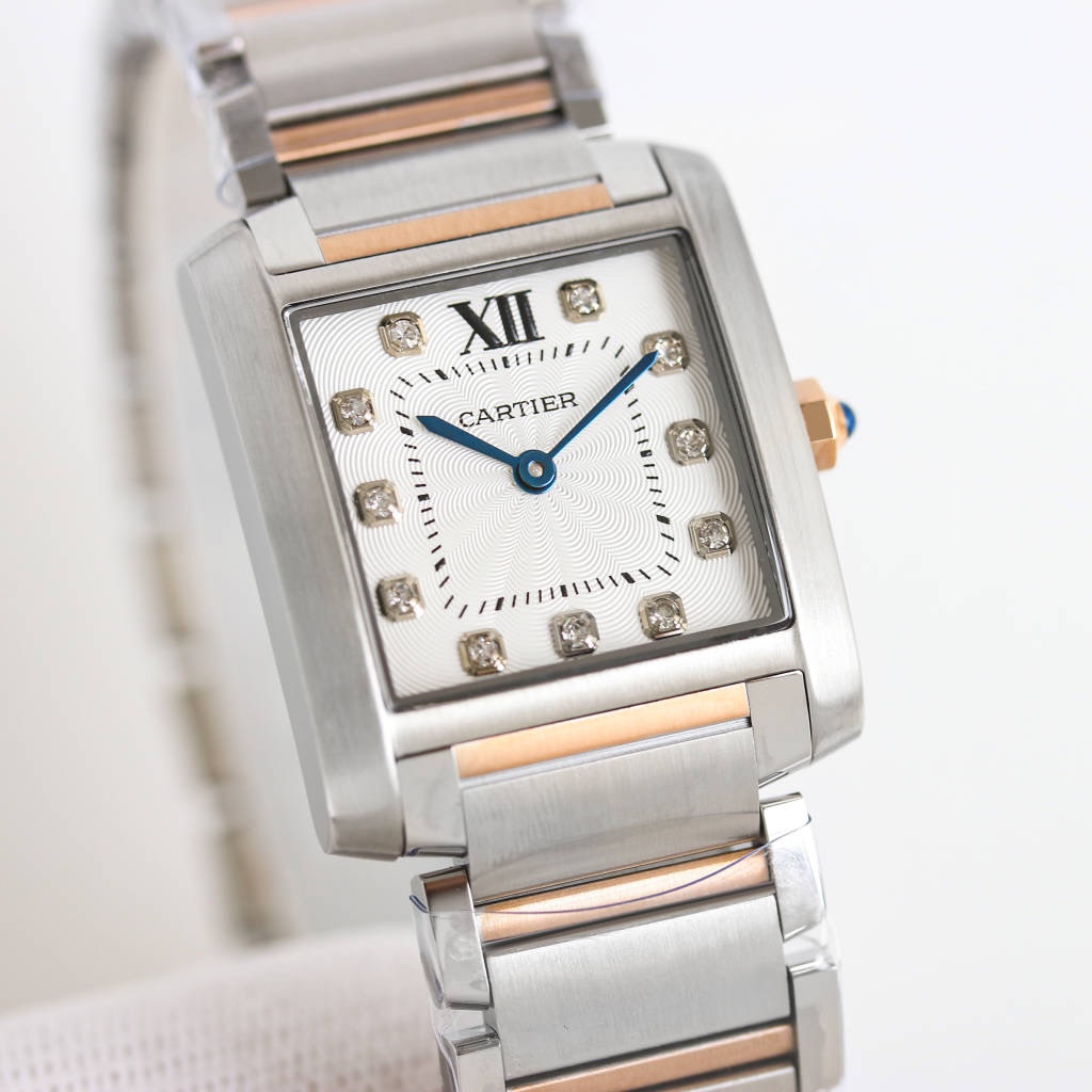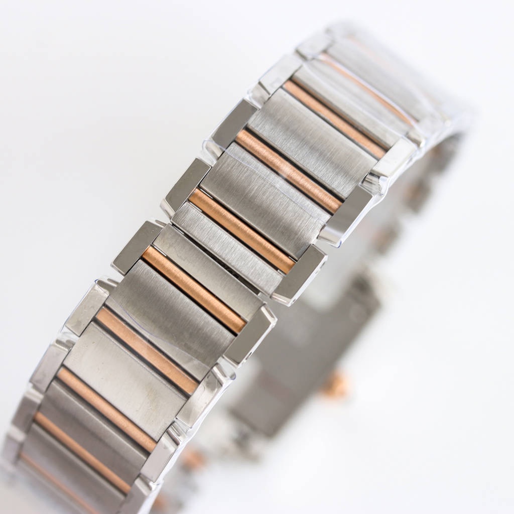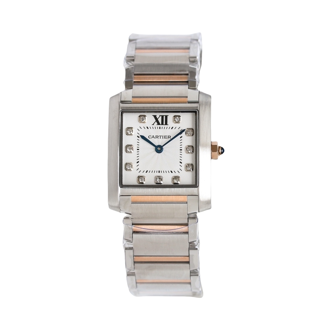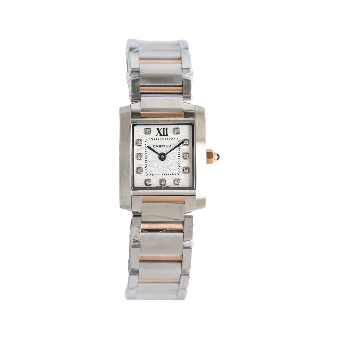 | Cartier Tank 30mm x 25mm Diamond White Dial Steel Bezel Rose Gold Steel Strap WE110005 Woman Ladies | |