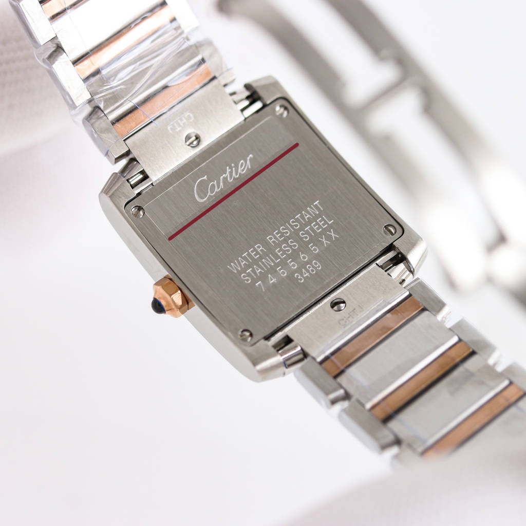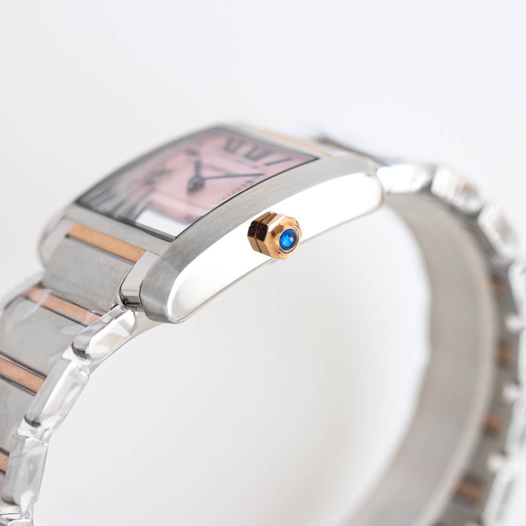 | Cartier Tank 30mm x 25mm Pink Fritillaria Dial Steel Bezel Rose Gold Steel Strap W51027Q4 Woman Ladies | |