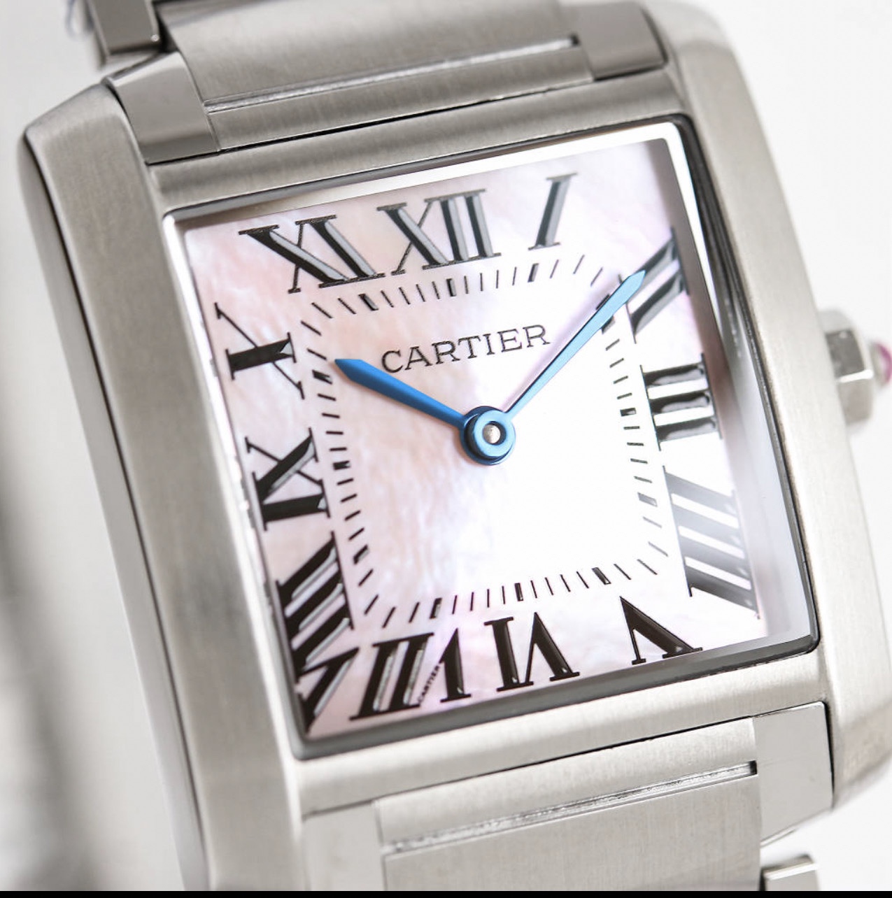 | Cartier Tank 30mm x 25mm Pink Fritillaria Dial Steel Bezel W51028Q3 Woman Ladies | |