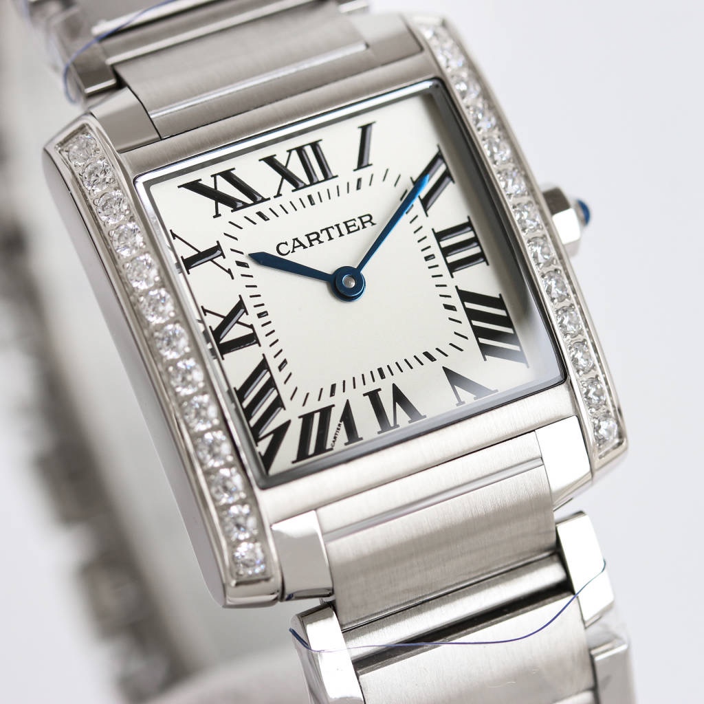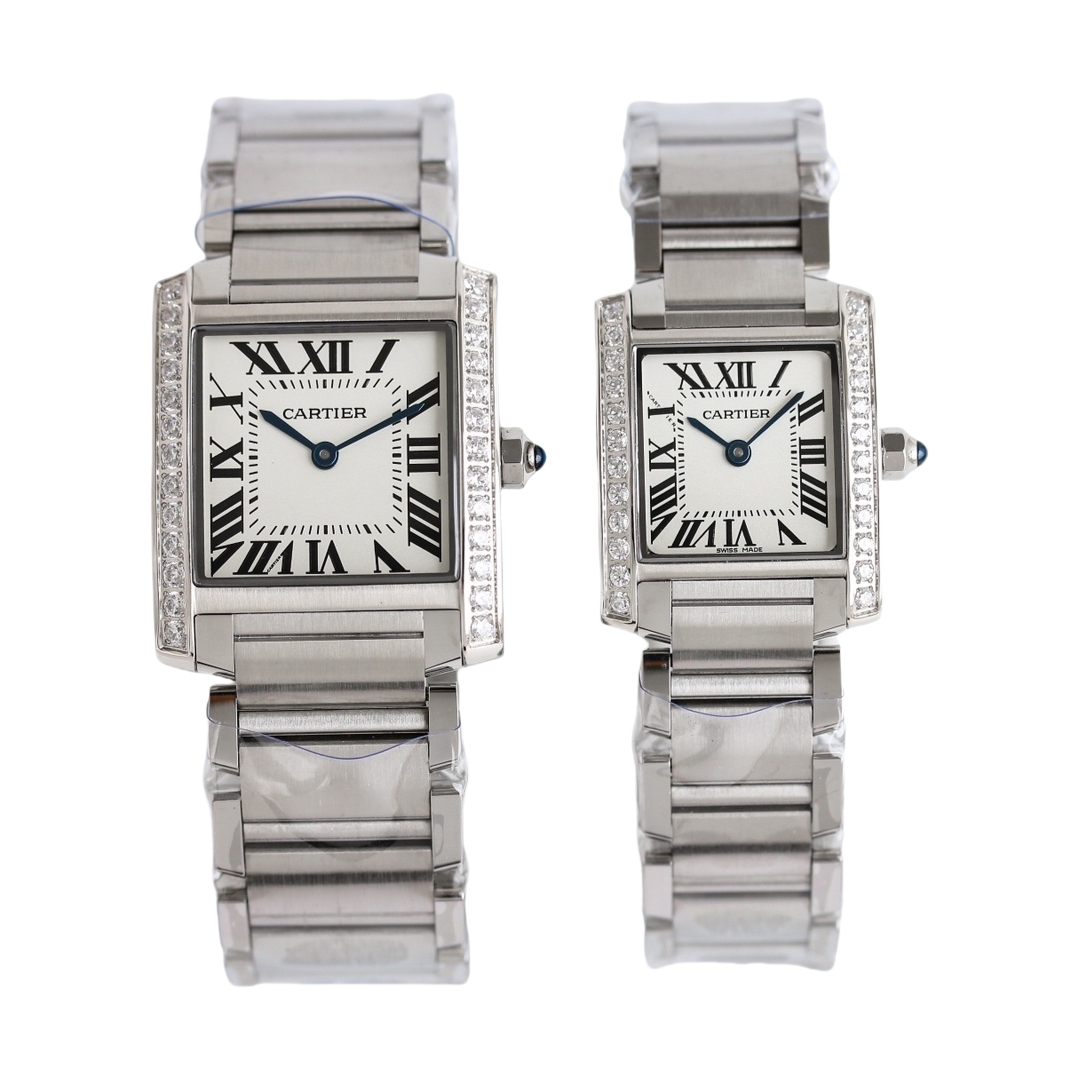 Cartier Tank 30mm x 25mm White Dial Steel Diamond Bezel W4TA0009 Woman Ladies