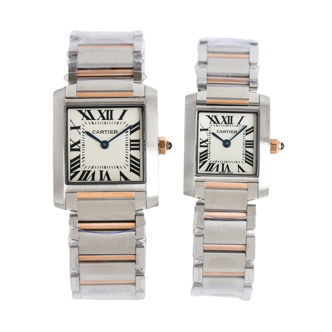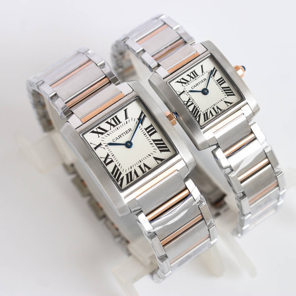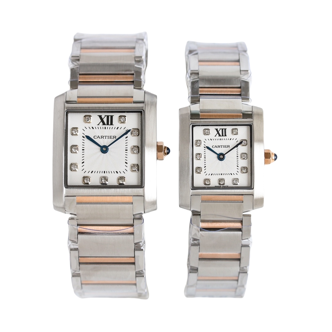Cartier Tank 30mm x 25mm White Dial Steel Bezel Rose Gold Steel Strap W51007Q4 Woman Ladies