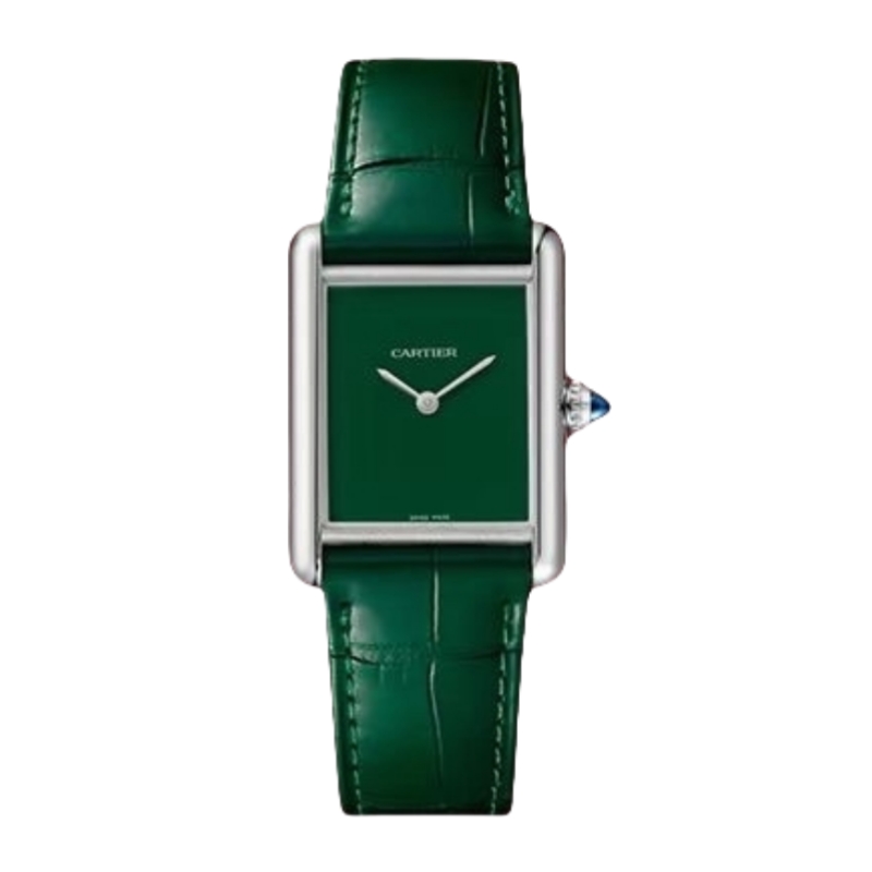 Cartier Tank Must 33.7mm x 25.5mm Green Dial Steel Bezel Green Leather Strap WSTA0056 Woman Ladies