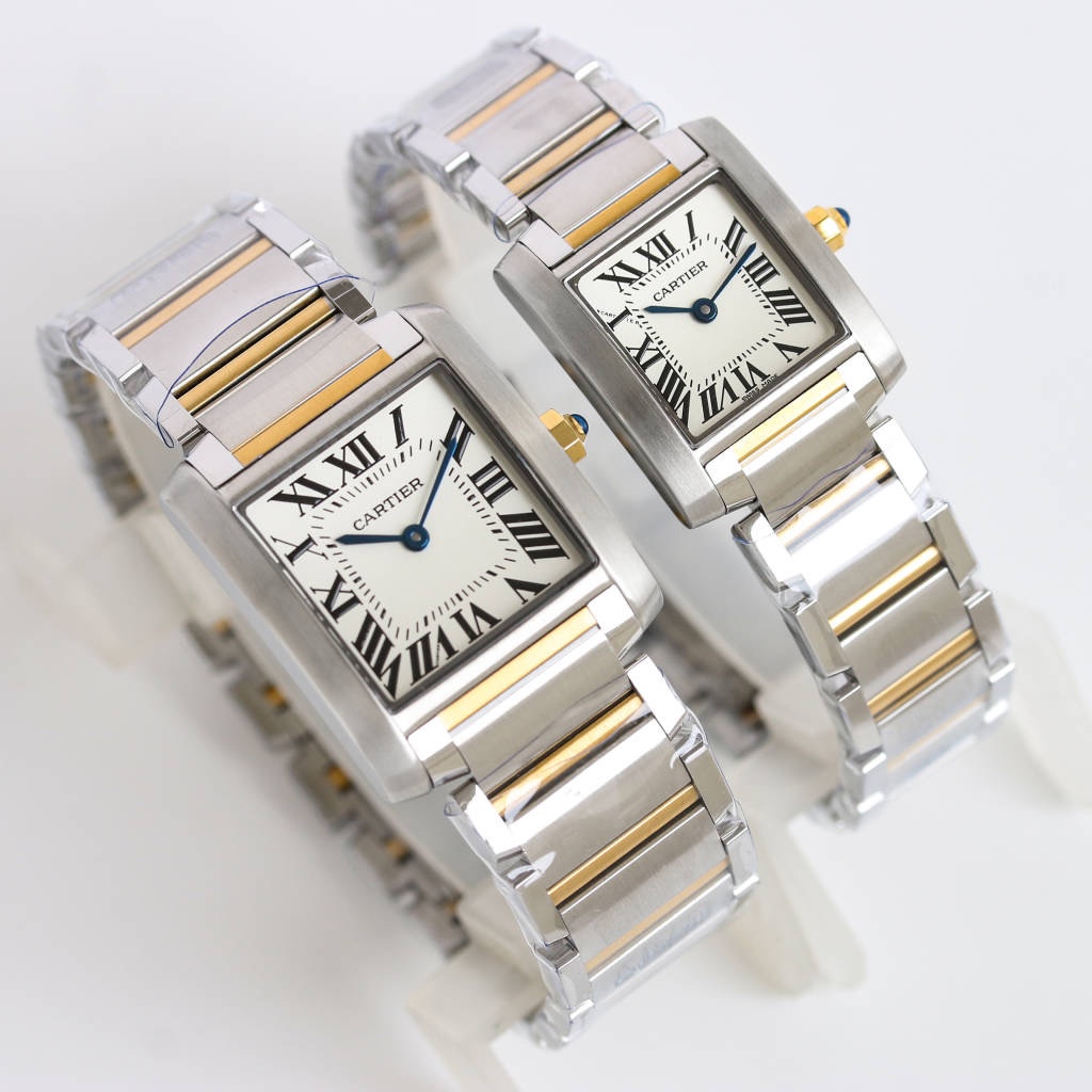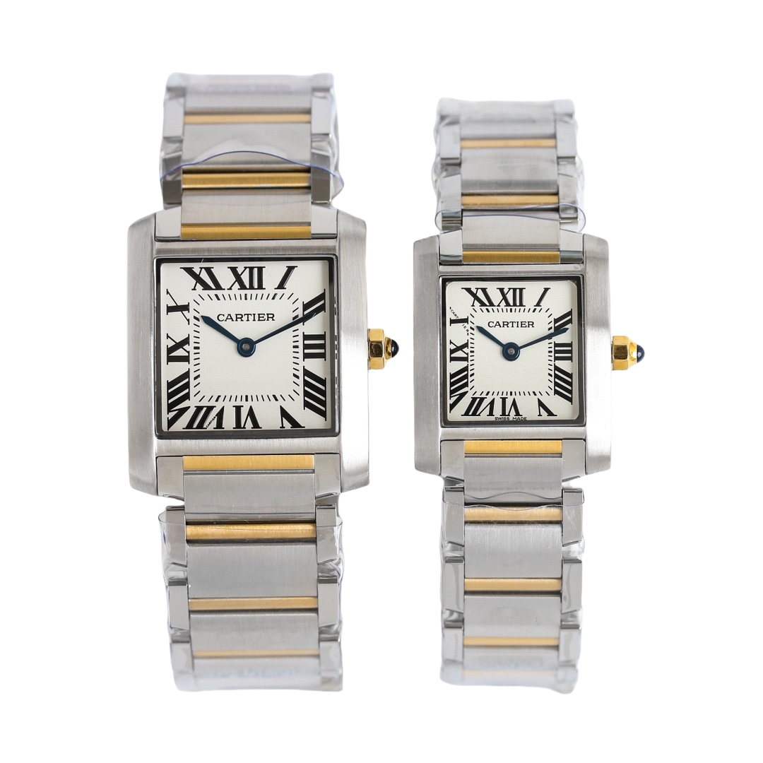 Cartier Tank 30mm x 25mm White Dial Steel Bezel Yellow Gold Steel Strap W2TA0003 Woman Ladies
