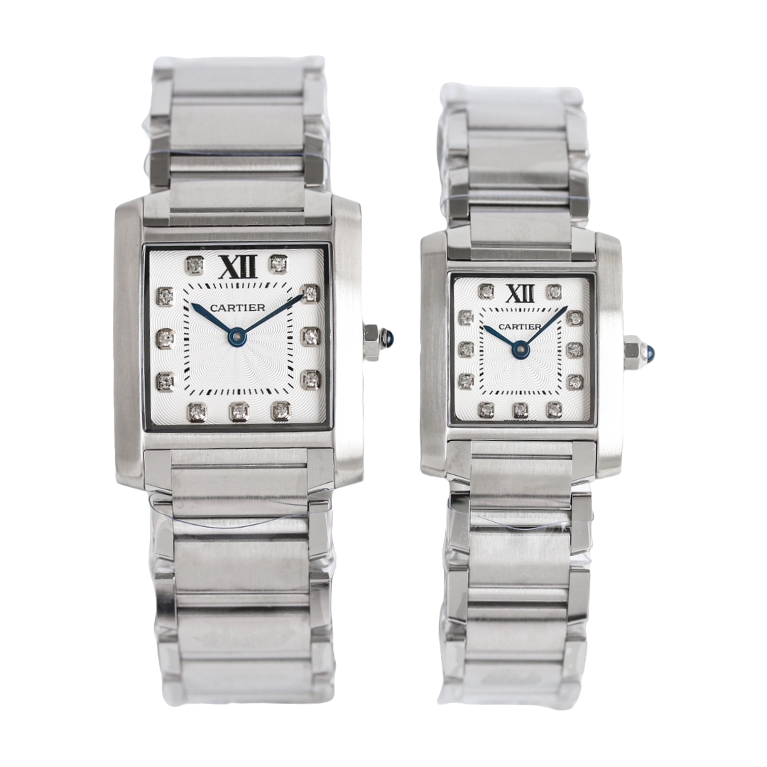 Cartier Tank 30mm x 25mm Diamond White Dial Steel Bezel WE110007 Woman Ladies