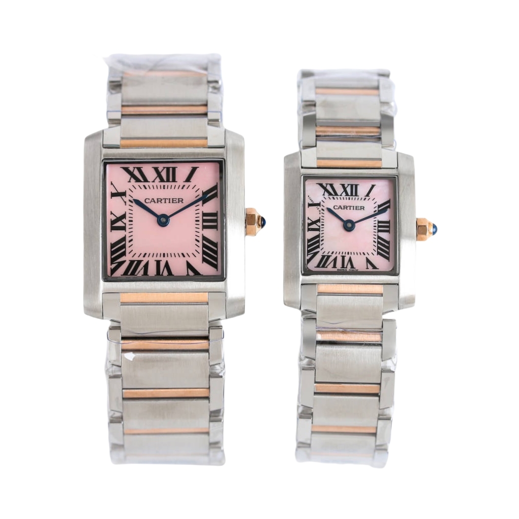 Cartier Tank 30mm x 25mm Pink Fritillaria Dial Steel Bezel Rose Gold Steel Strap W51027Q4 Woman Ladies