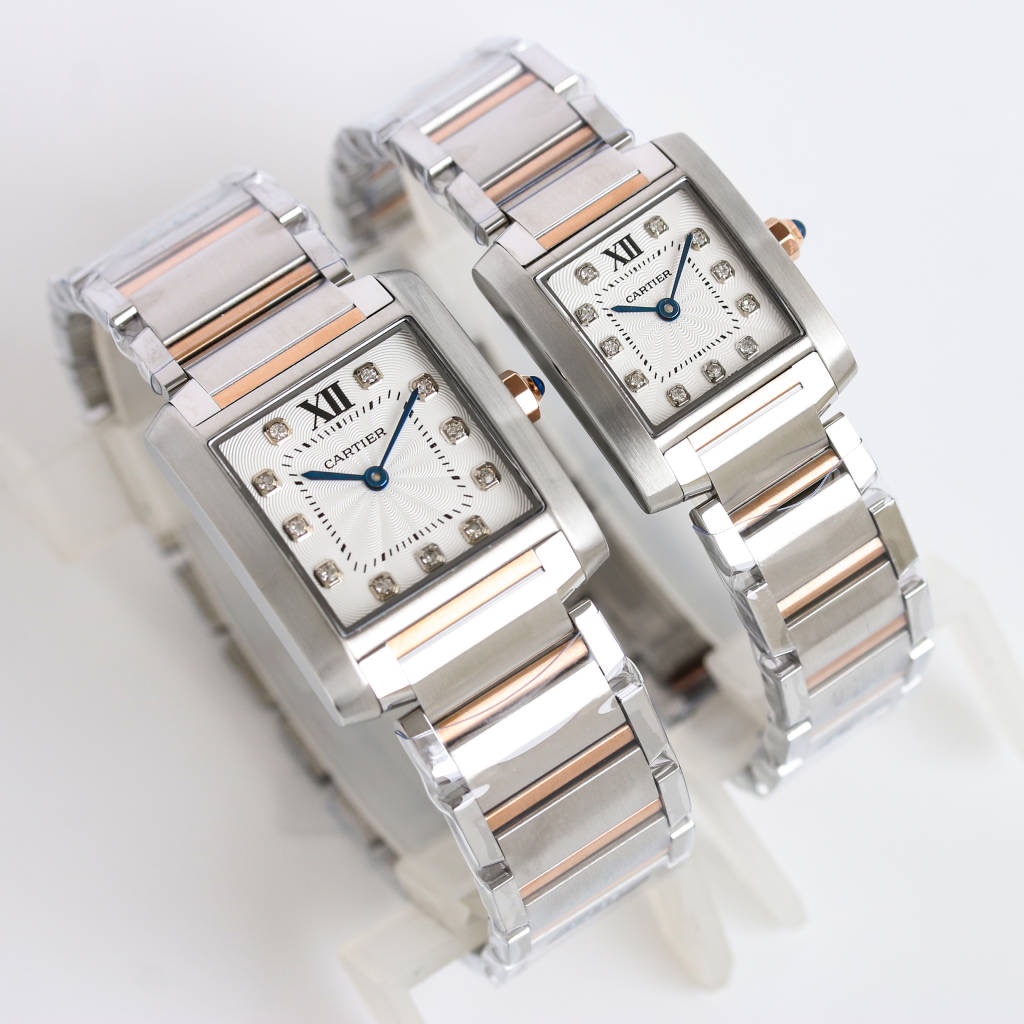 Cartier Tank 30mm x 25mm Diamond White Dial Steel Bezel Rose Gold Steel Strap WE110005 Woman Ladies
