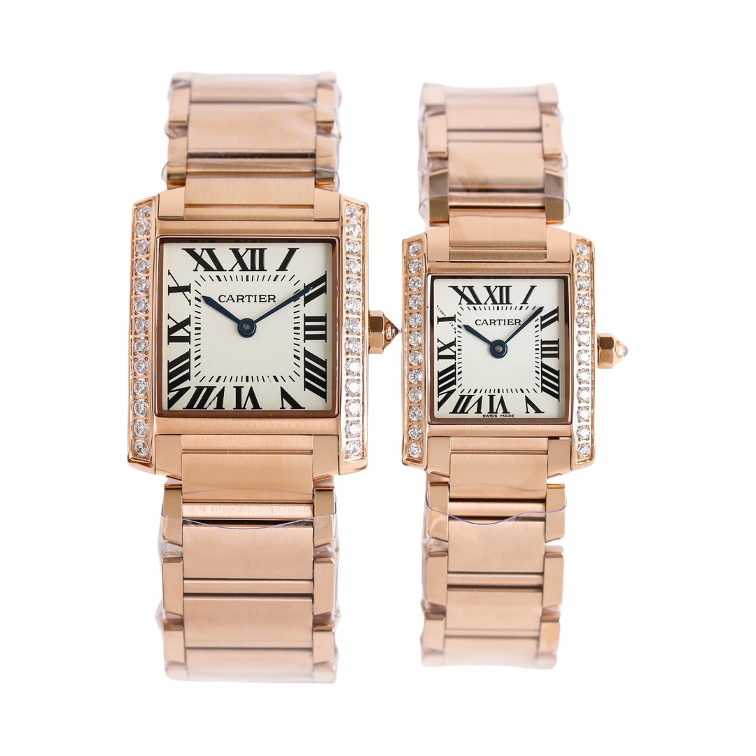 Cartier Tank 30mm x 25mm White Dial Rose Gold Diamond Bezel Rose Gold Strap WJTA0023 Woman Ladies