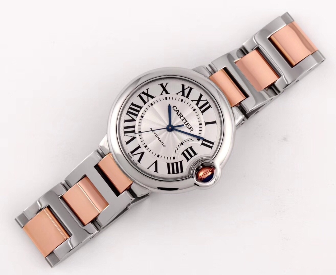 | Cartier Ballon Bleu 36mm 33mm White Dial Rose Gold Steel Bezel Strap W2BB0033 Ladies | |