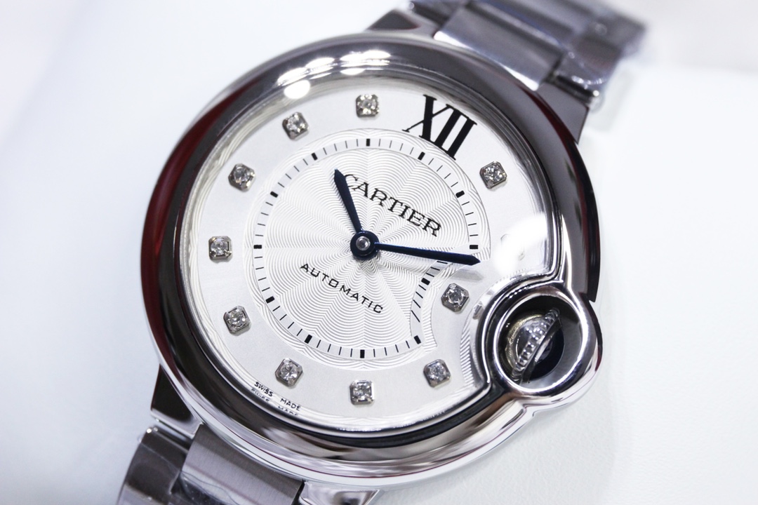 Cartier Ballon Bleu 36mm 33mm White Diamond Dial Steel Bezel Strap W4BB0021 Ladies