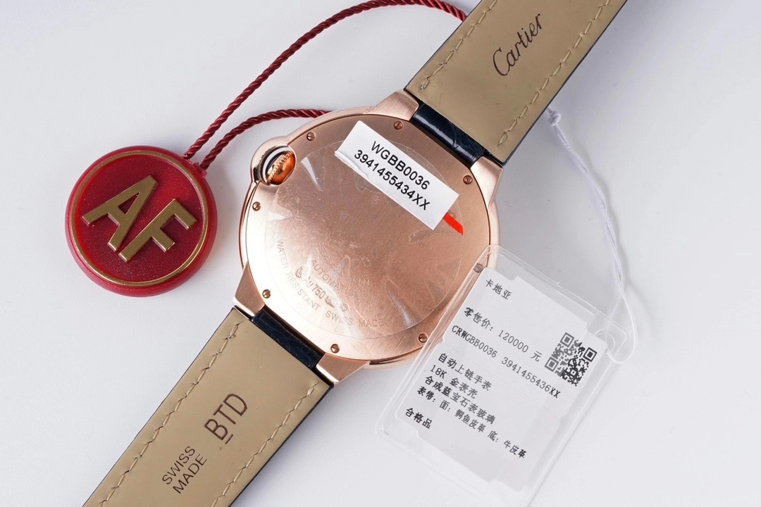 | Cartier Ballon Bleu 42mm Blue Dial Rose Gold Bezel Blue Leather Strap WGBB0036 | |