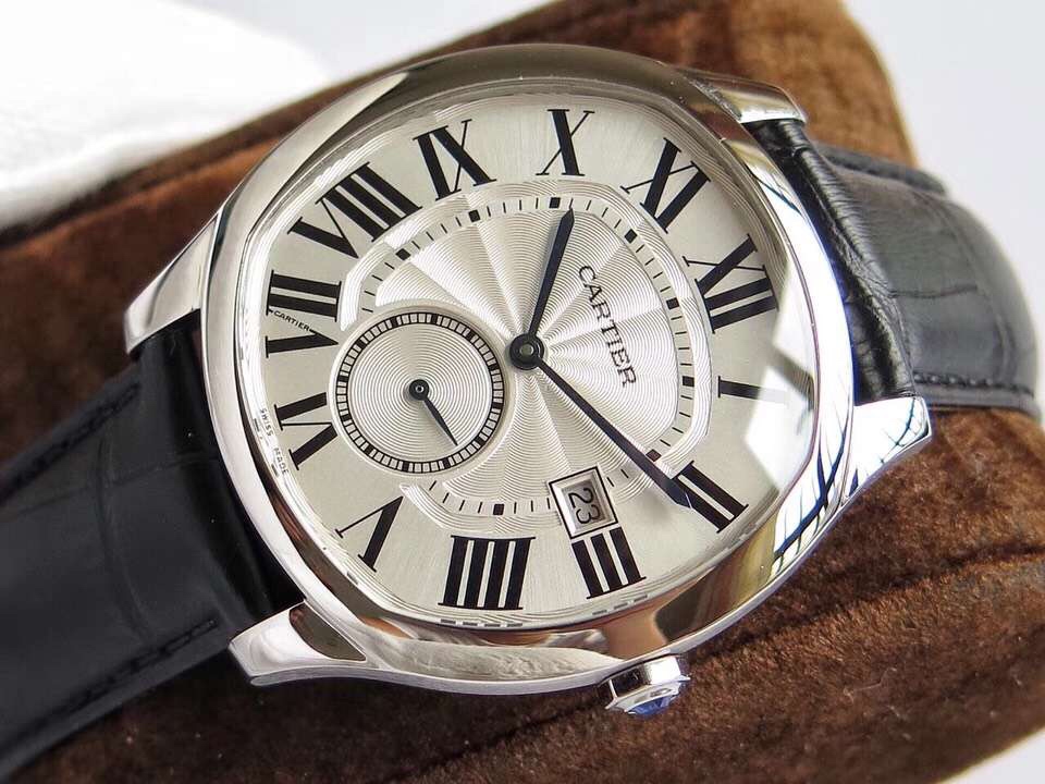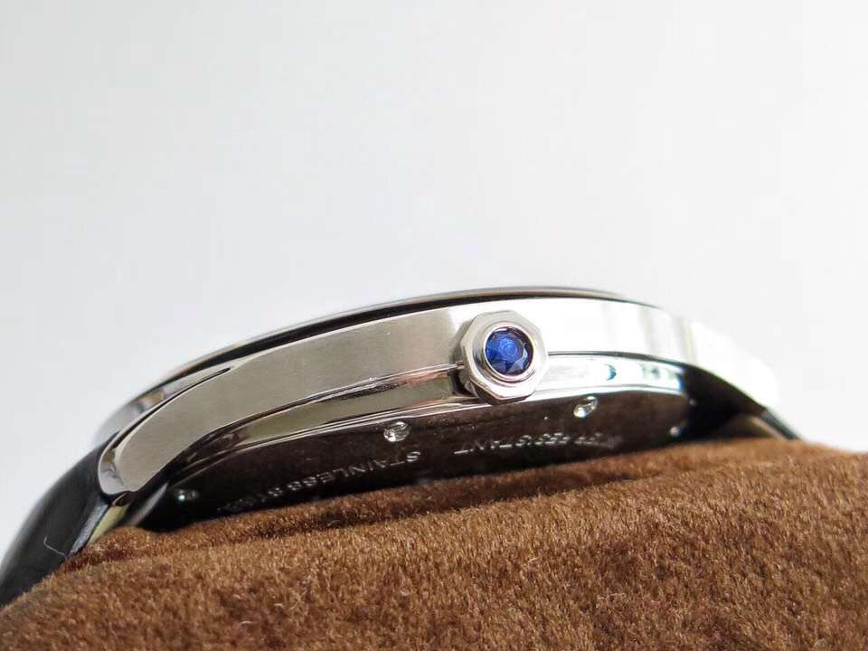 | Cartier Drive 40mm Silver Gray Dial Steel Bezel Black Leather Strap WSNM0004 | |