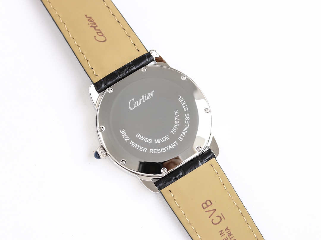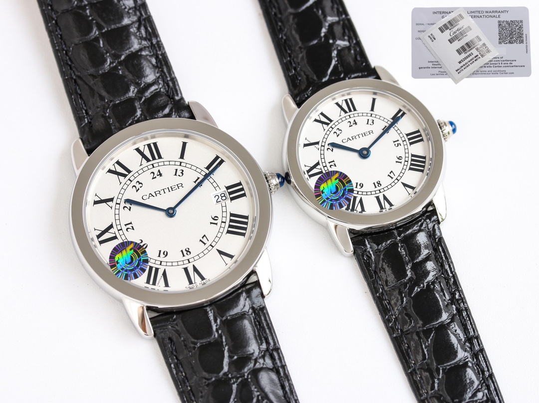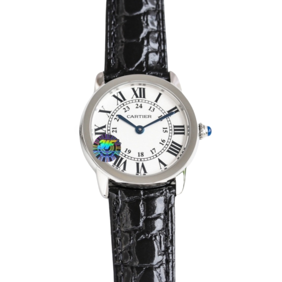 | Cartier Ronde Steel 36mm 29mm White Dial Steel Bezel Black Leather Strap WSRN0013 | |