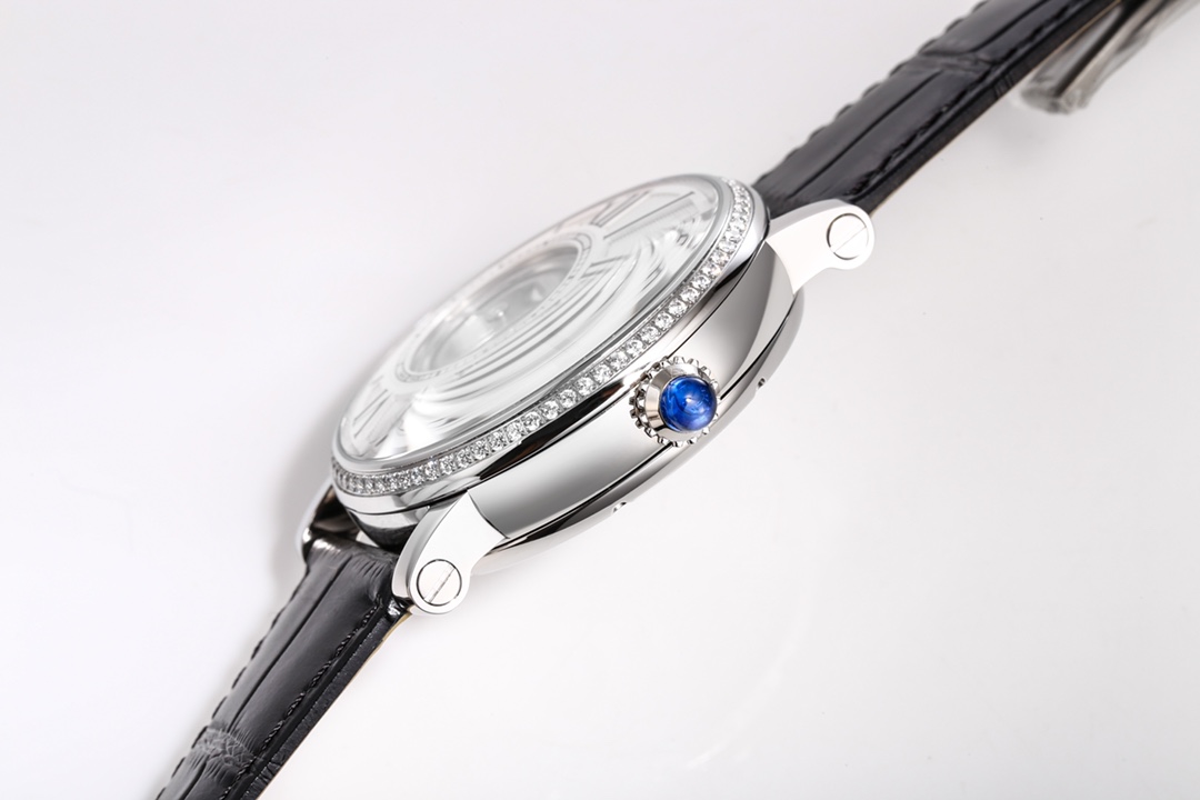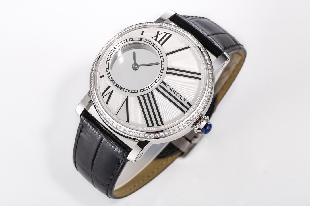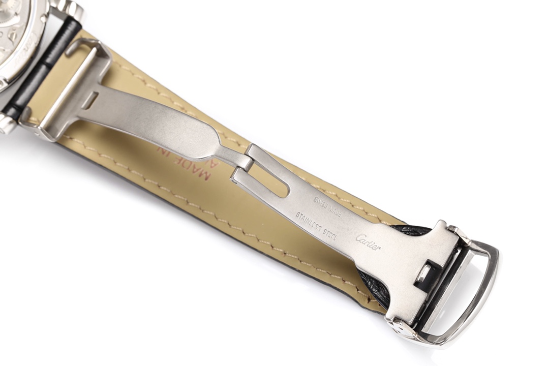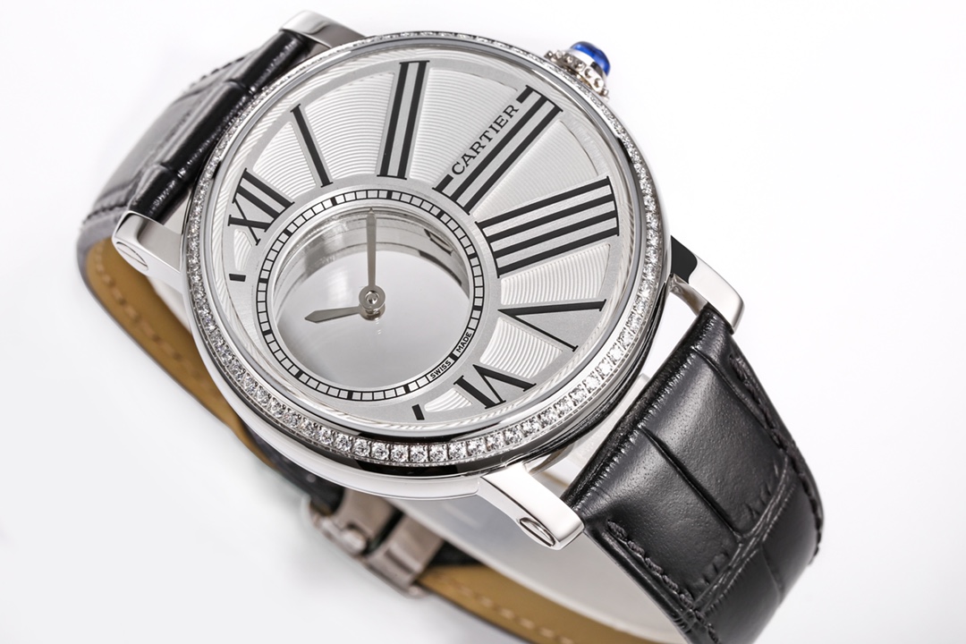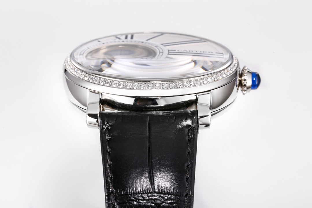 | Cartier Rotonde 42mm Hollow Dial Steel Bezel Black Leather Strap W1556224 | |