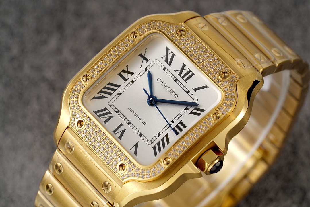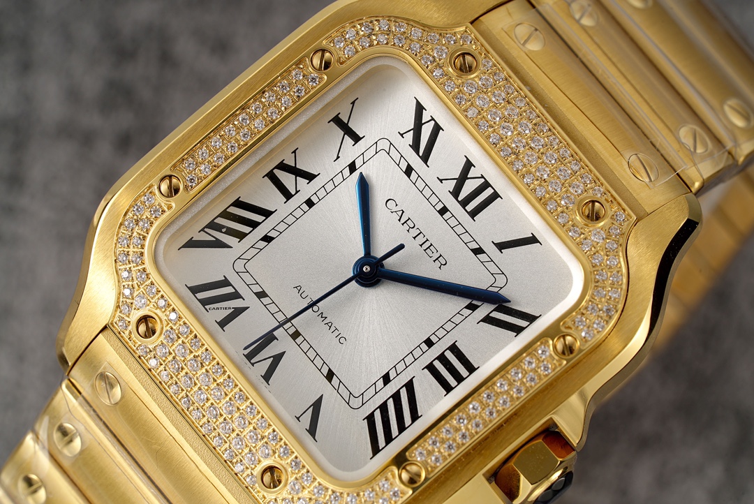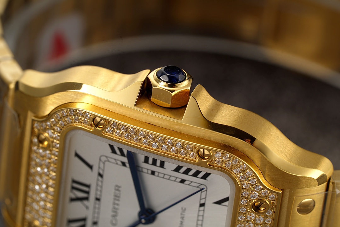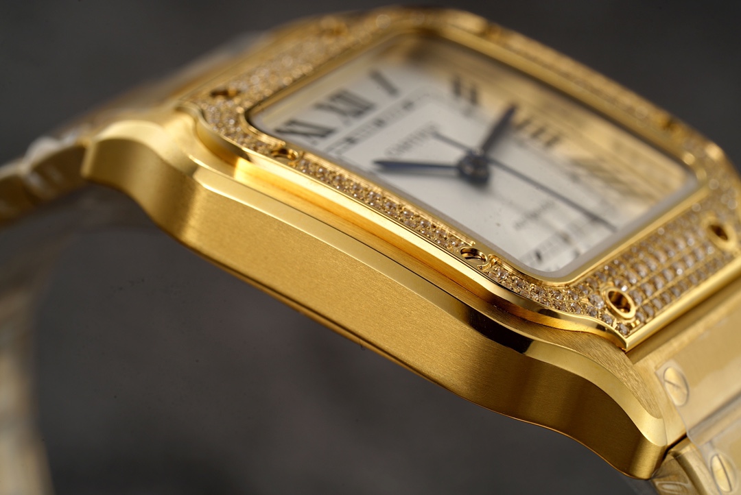 | Cartier Santos 35.1mm White Dial Diamond Yellow Gold Bezel Strap Roman Numerals W4SA000X Ladies | |