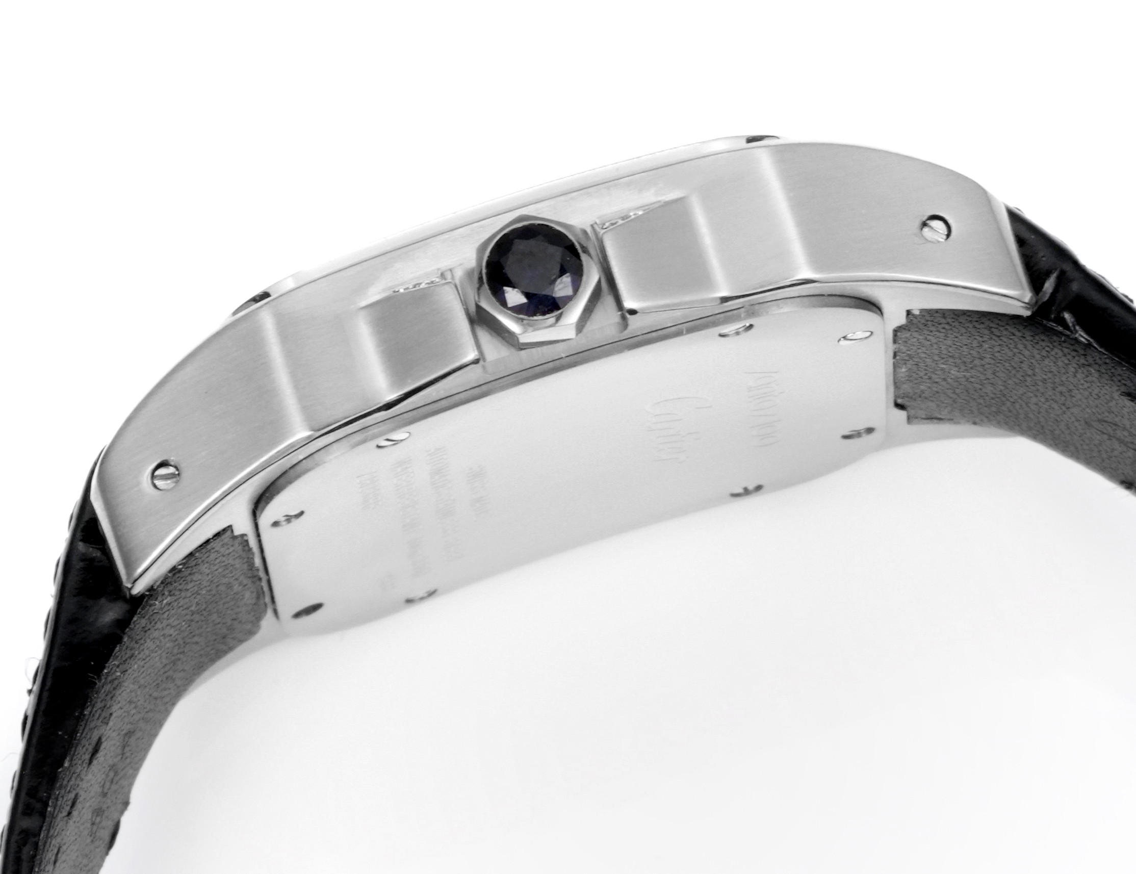 | Cartier Santos 41.3mm White Dial Steel Diamond Bezel Black Leather Strap W25071Y1 | |
