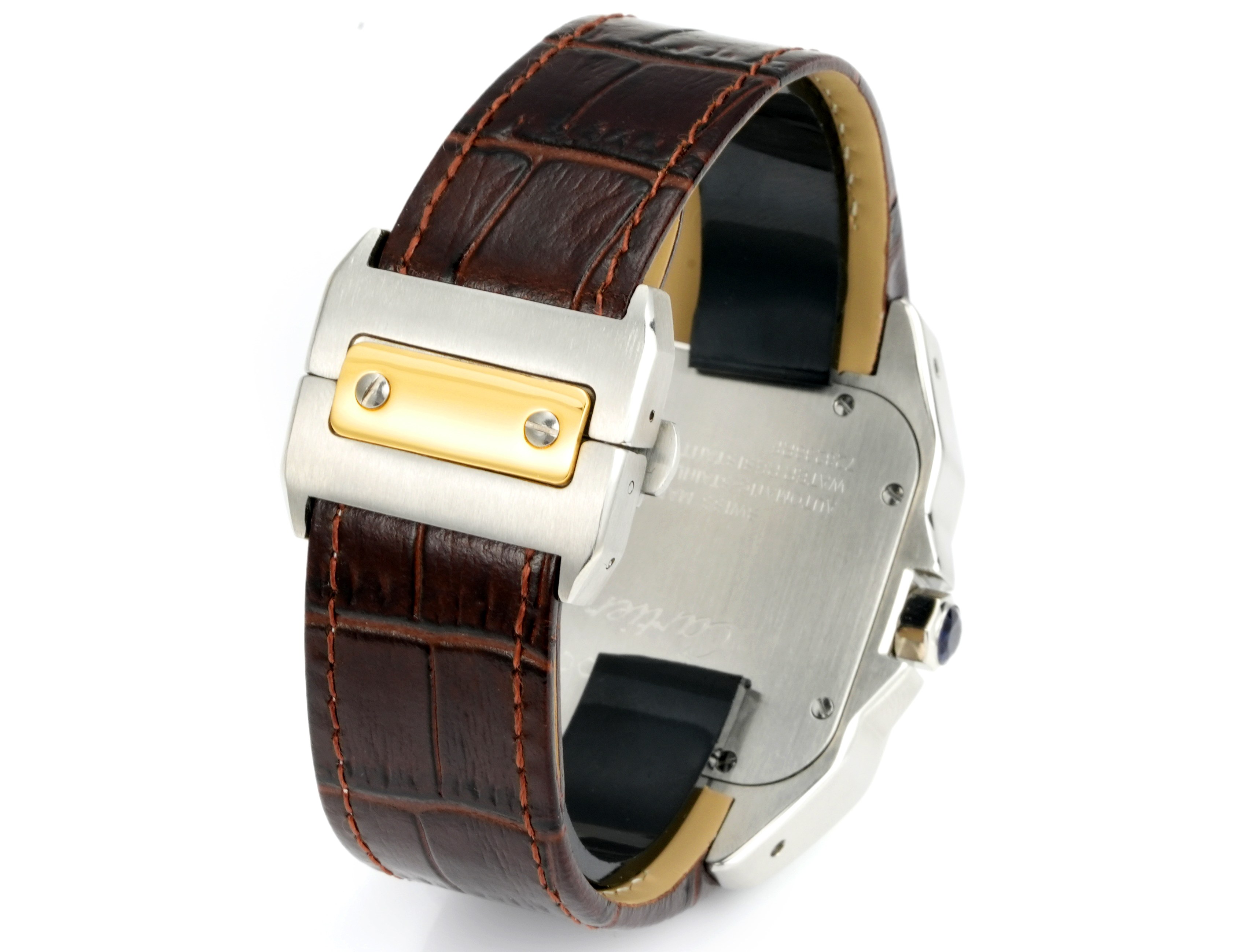 | Cartier Santos 41.3mm White Dial Yellow Gold Steel Bezel Brown Leather Strap W22071Y1 | |