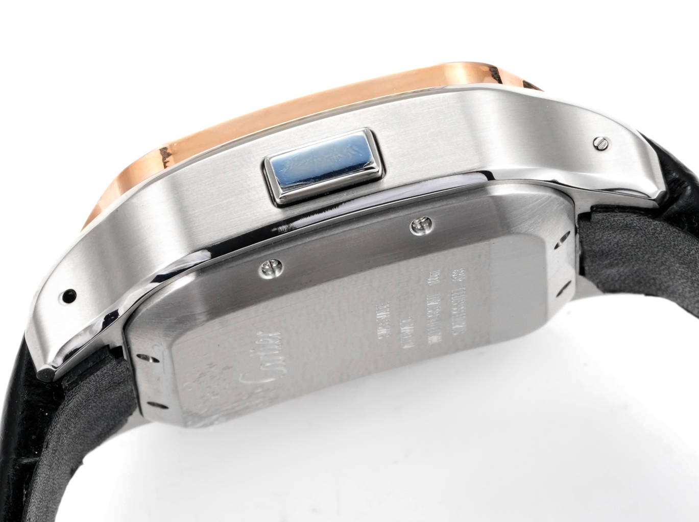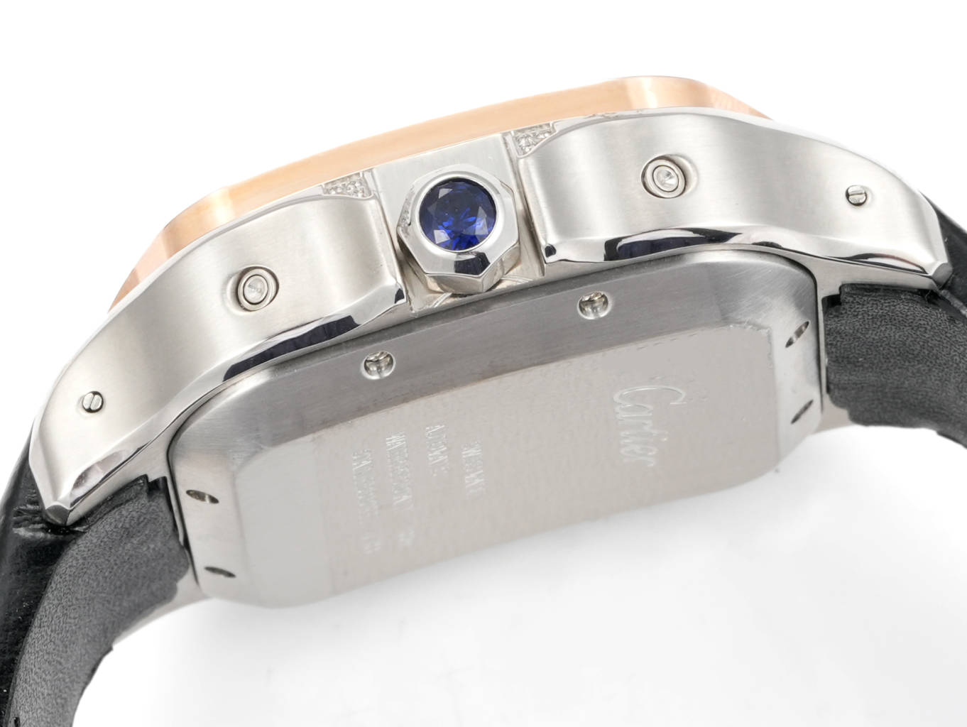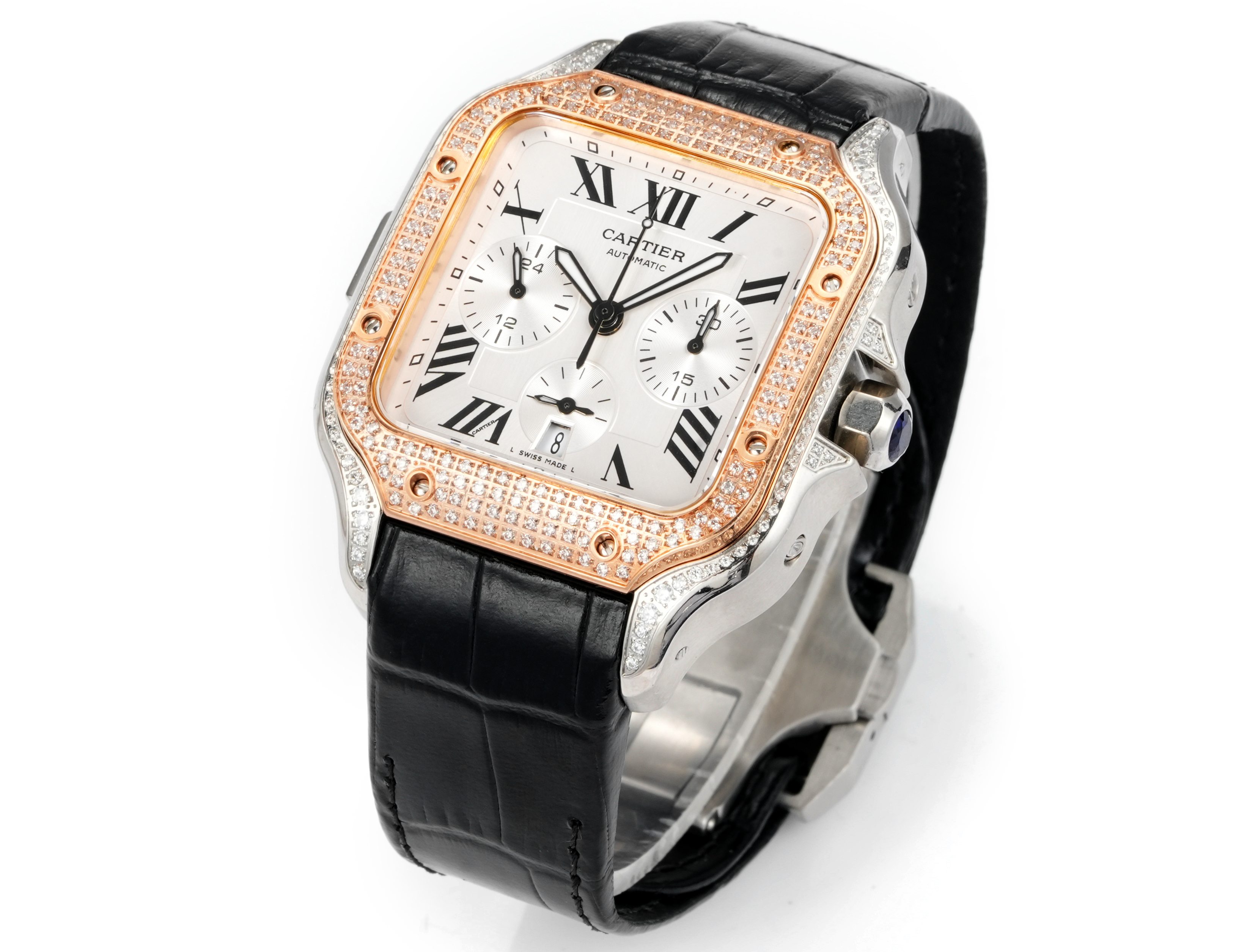 | Cartier Santos 43.3mm White Dial Rose Gold Steel Diamond Bezel Black Leather Strap WSSAG017 | |