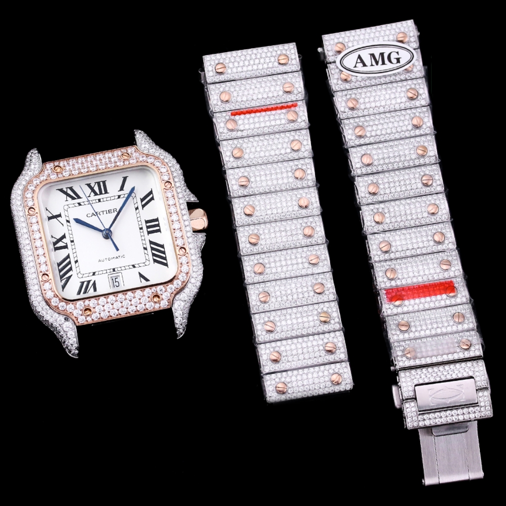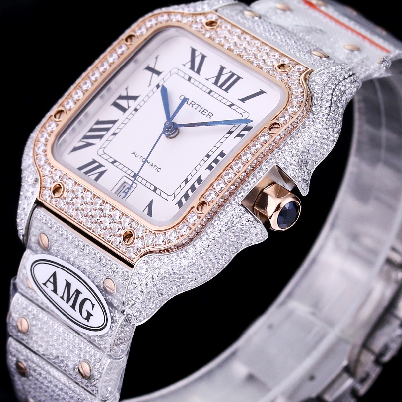 • Cartier Santos Full Diamond 40mm 9015 movement White dial Rose Gold