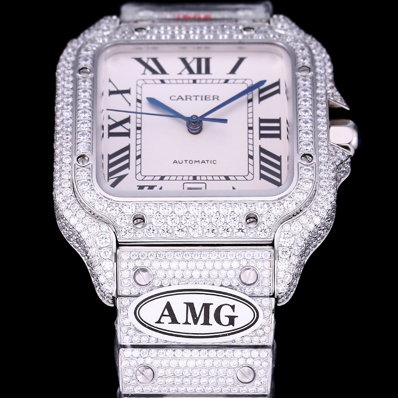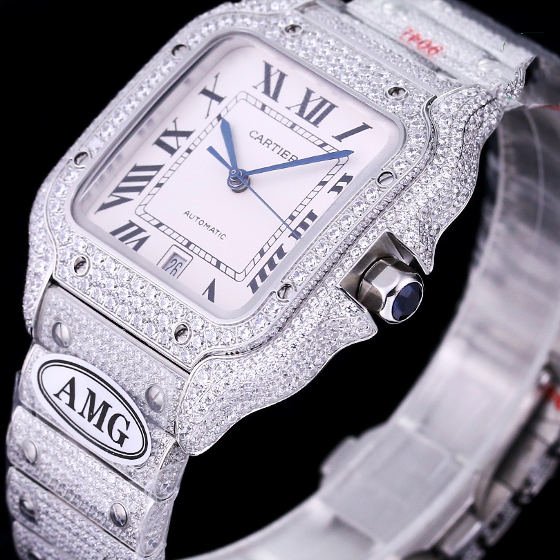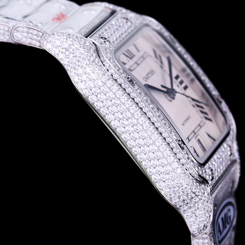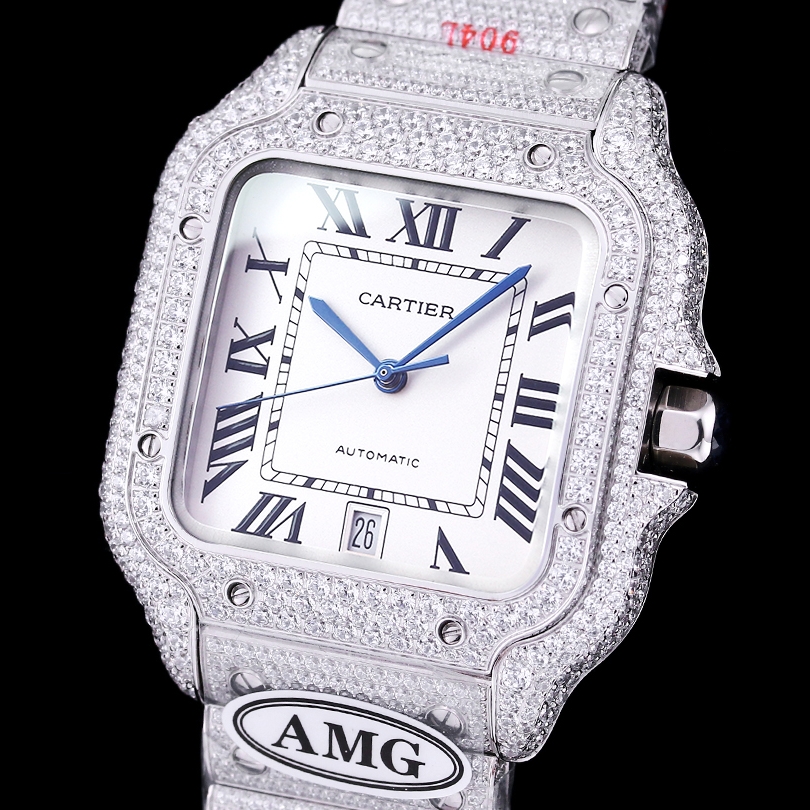 • Cartier Santos Full Diamond 40mm 9015 movement White dial White Gold