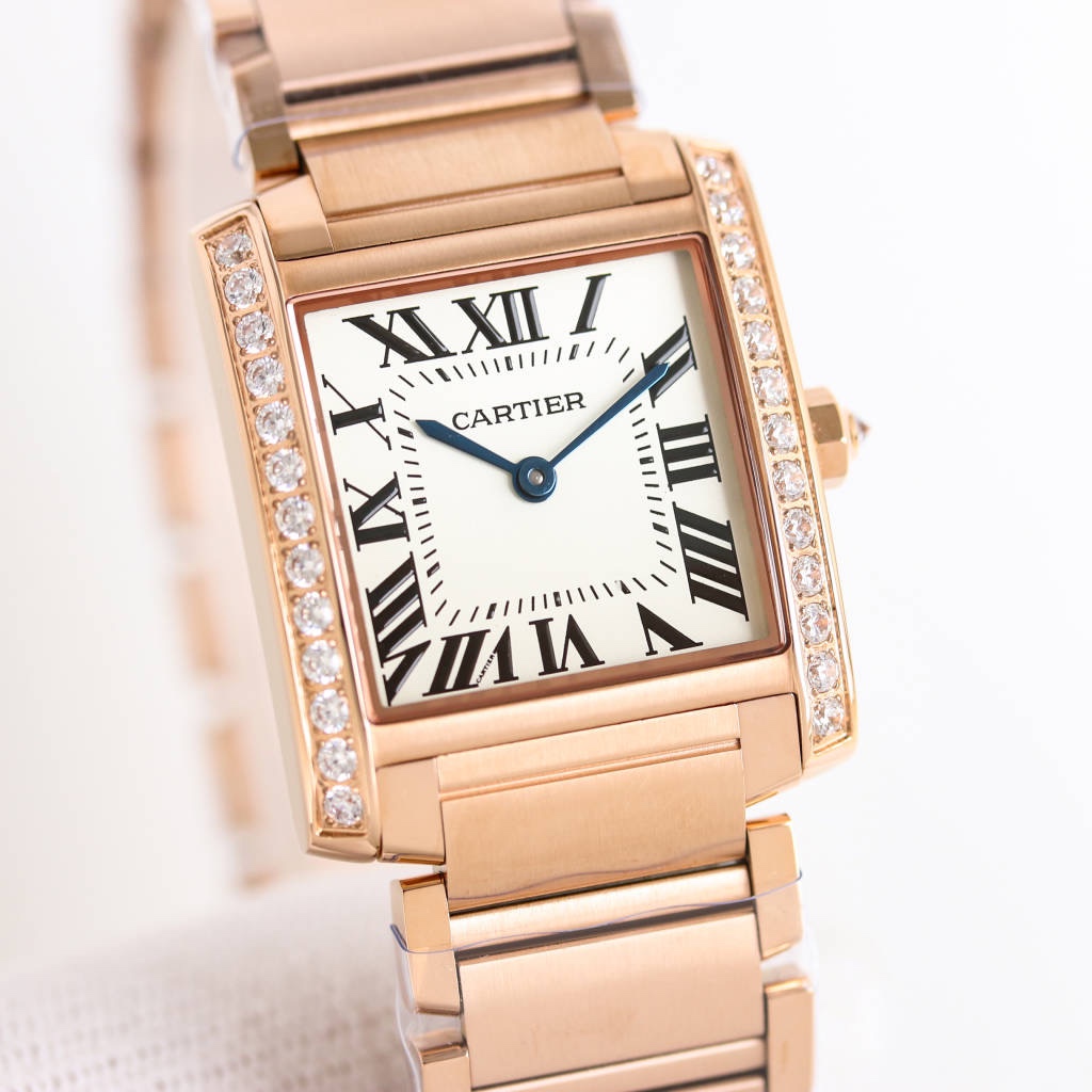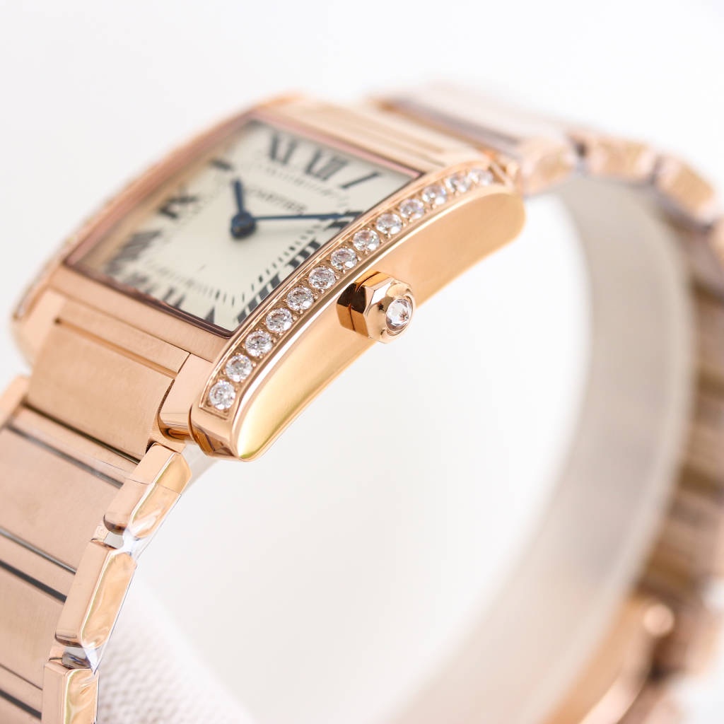 | Cartier Tank 30mm x 25mm White Dial Rose Gold Diamond Bezel Rose Gold Strap WJTA0023 Woman Ladies | |