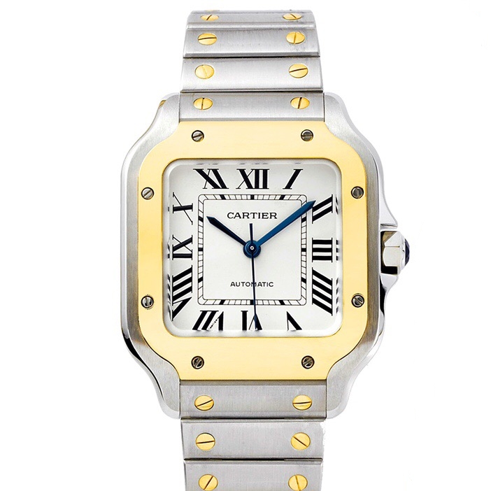 Cartier Santos 35.1mm White Dial Yellow Gold & Steel Bezel Strap Roman Numerals W2SA0016 Ladies