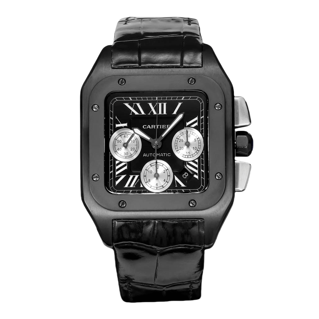 Cartier Santos 42mm Black Silver Dial Black Bezel Black Leather Strap W2020005