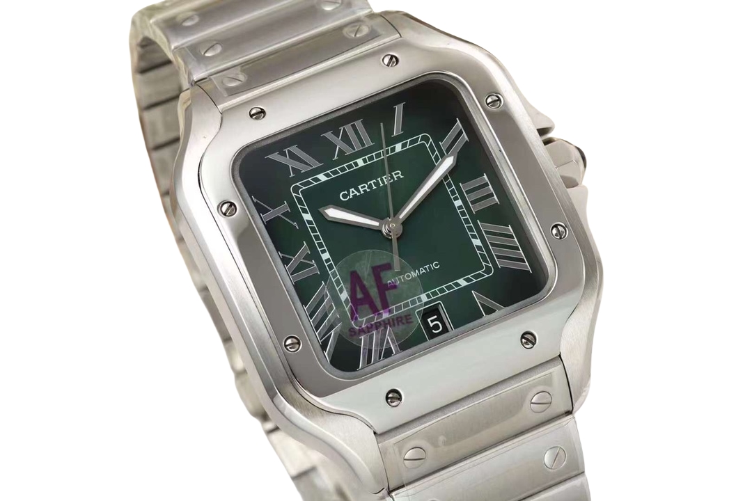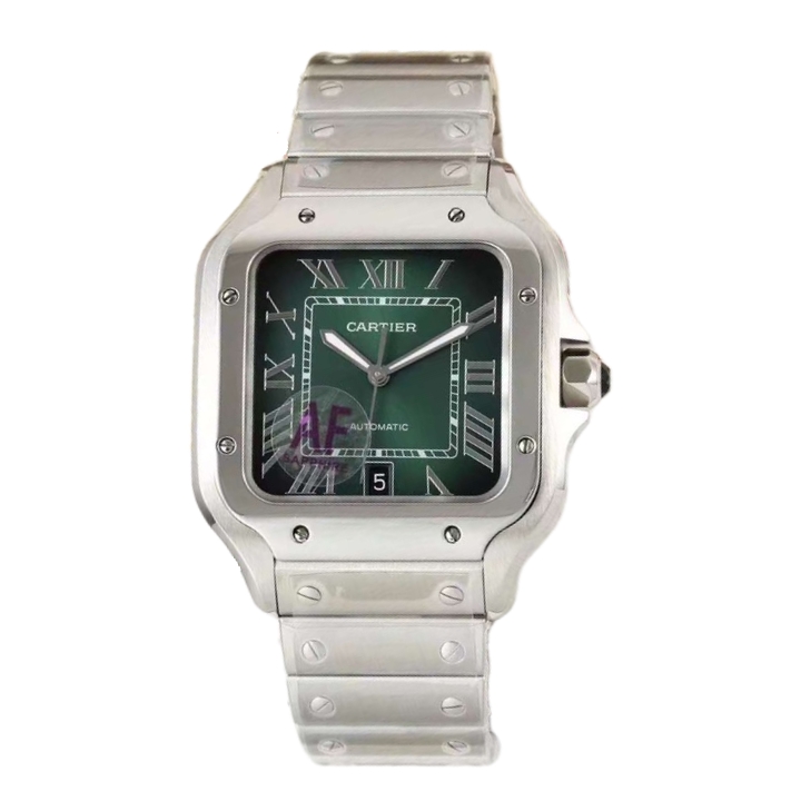 Cartier Santos 39.8mm Green Black Dial Steel Bezel Steel Strap WSSA0062
