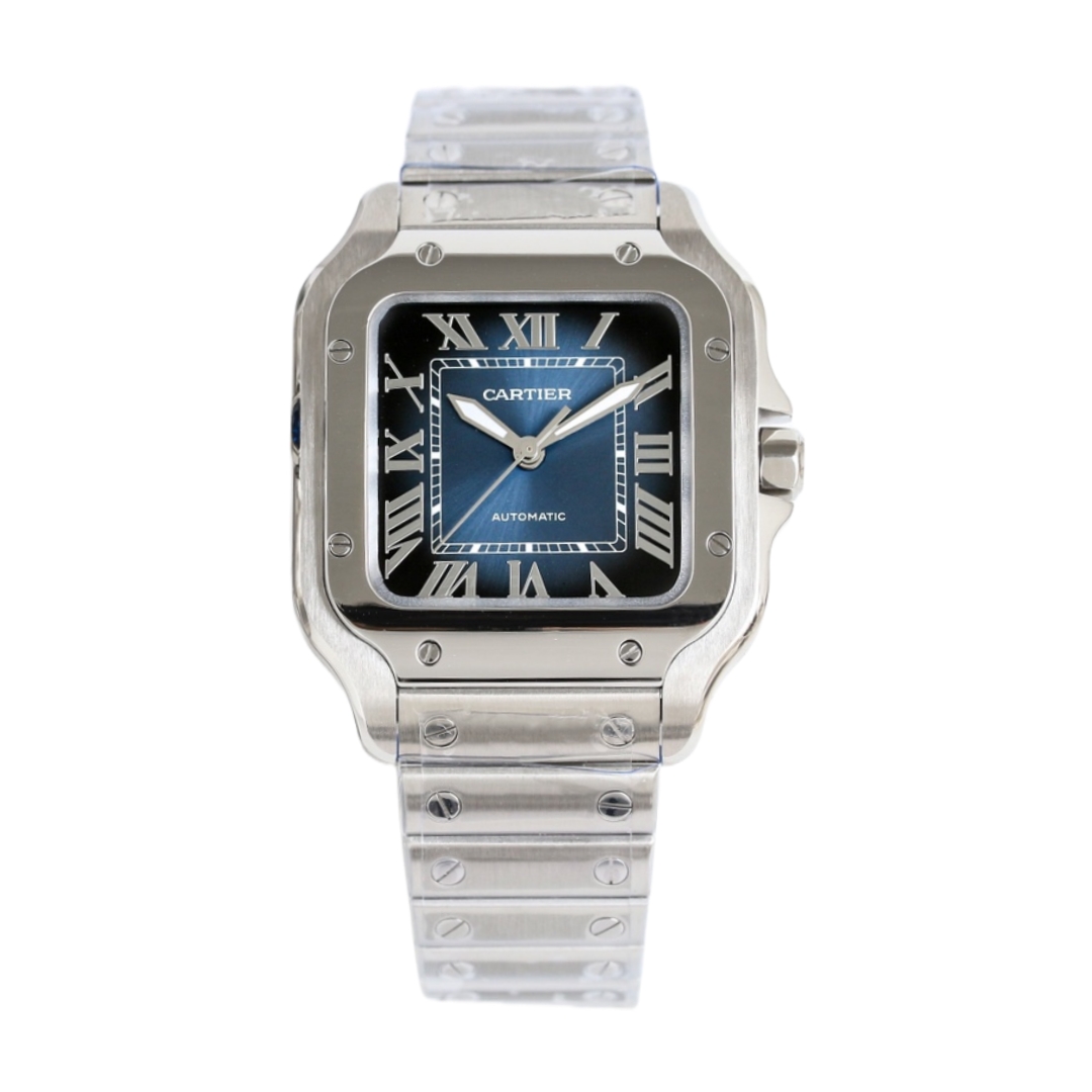 Cartier Santos 35.1mm Blue Black Dial Steel Bezel Steel Strap WSSA0063 Ladies