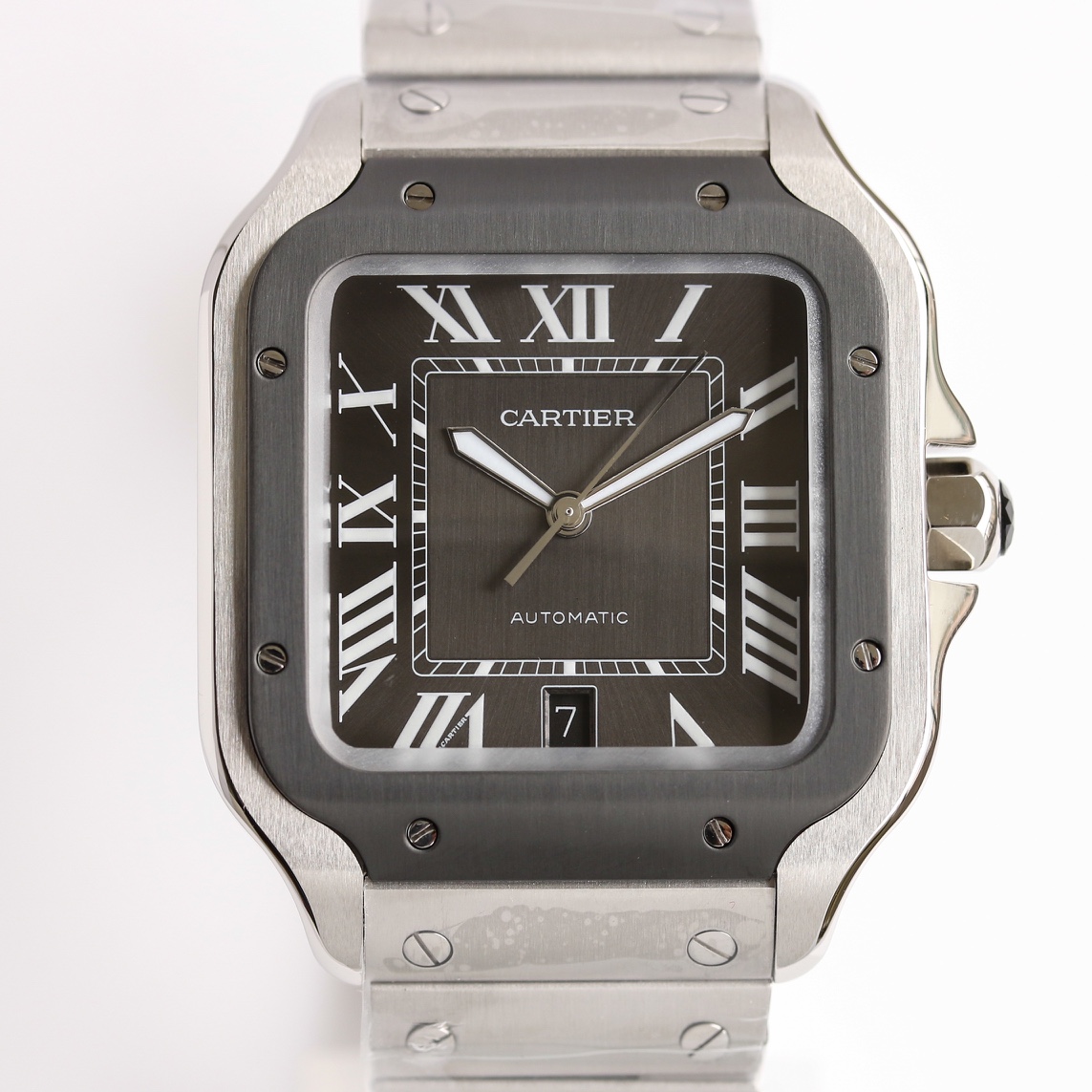Cartier Santos 39.8mm Dark Gray Dial Steel Bezel Steel Strap WSSA0015