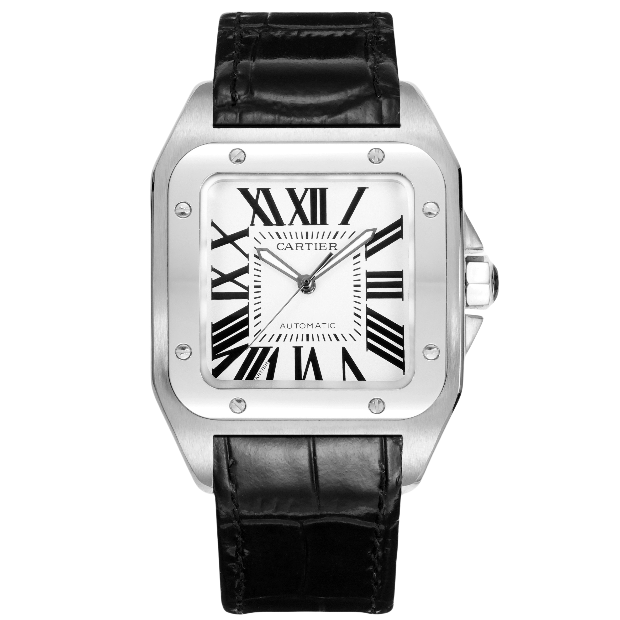 Cartier Santos 41.3mm White Dial Steel Bezel Black Leather Strap W24071Y1