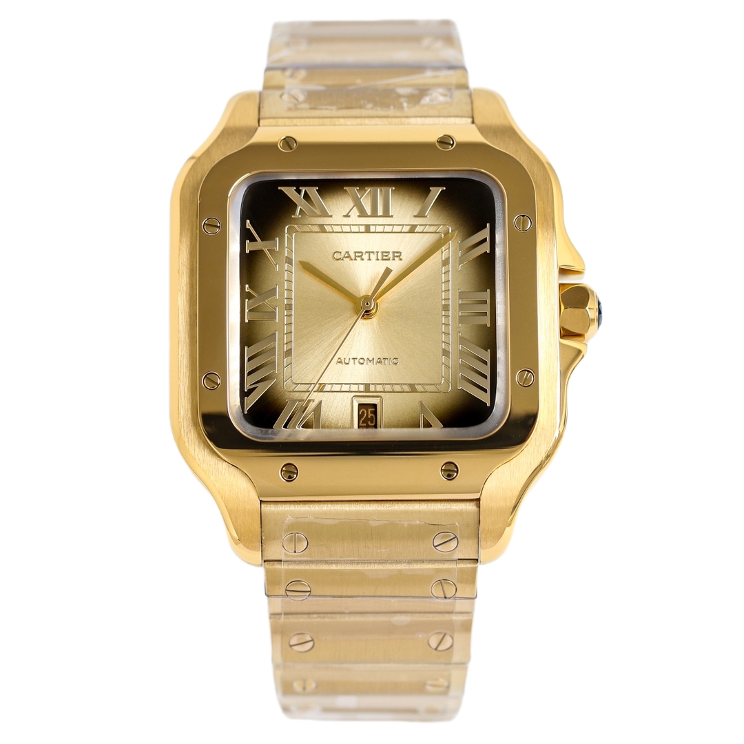 Cartier Santos 39.8mm Yellow Dial Yellow Gold Bezel Strap Roman Numerals WGSA0095