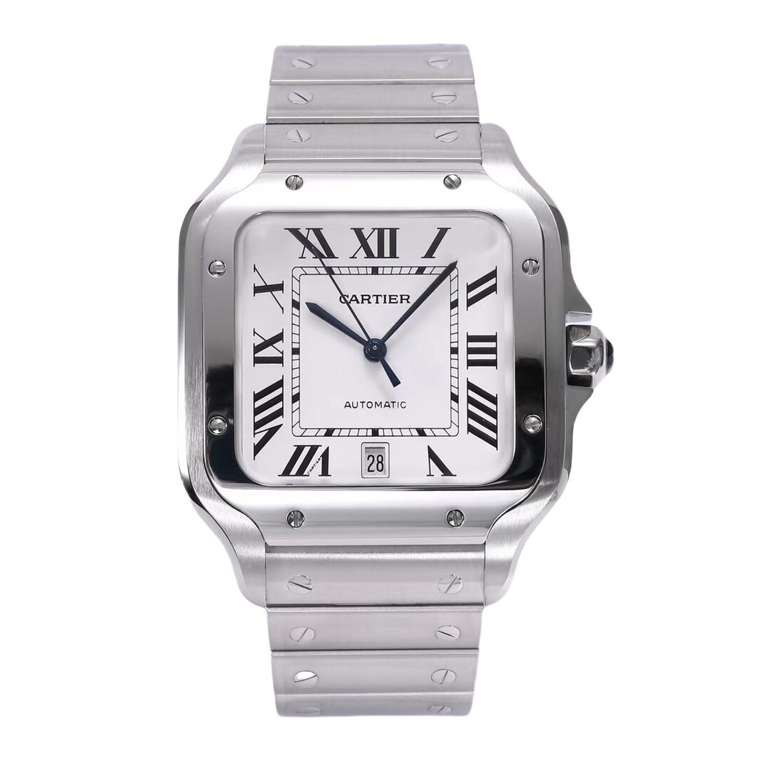 Cartier Santos 39.8mm White Dial Steel Bezel Strap WSSA0018
